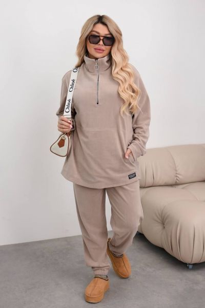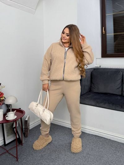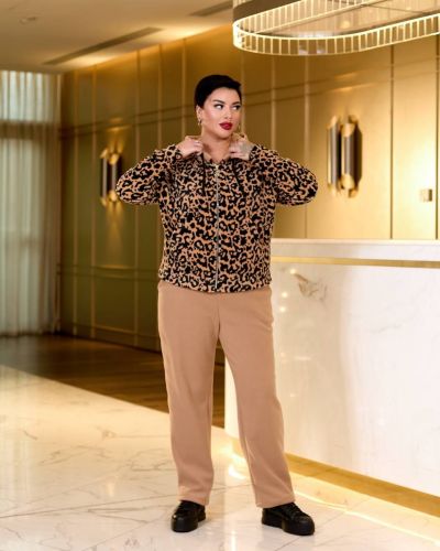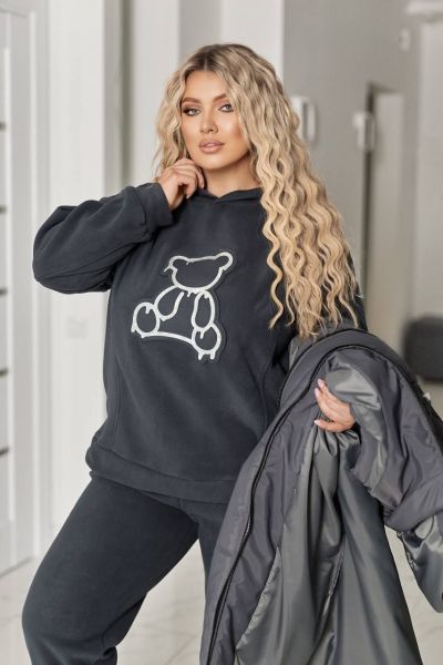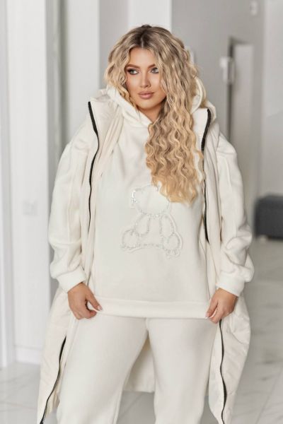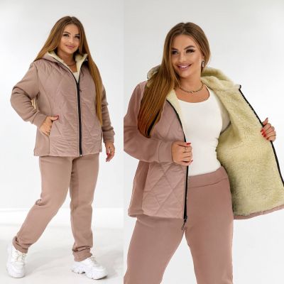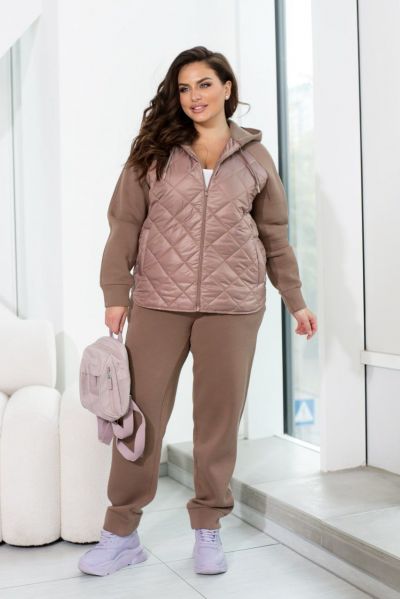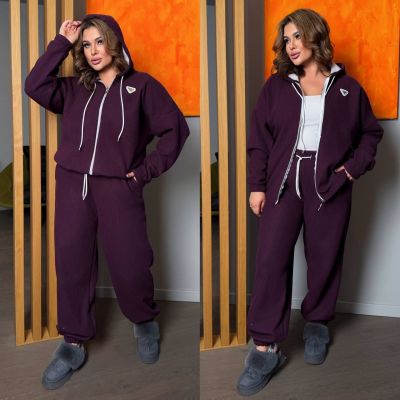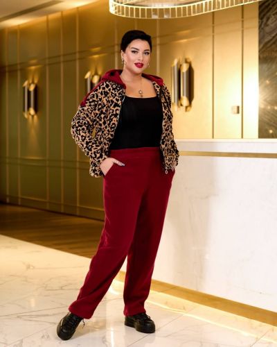 Свободный покрой позволяет носить спортивные костюмы больших размеров фактурным дамам любого возраста. Стильные элементы декора – бусины, камни и пайетки, делают данный вид одежды очень женственным.