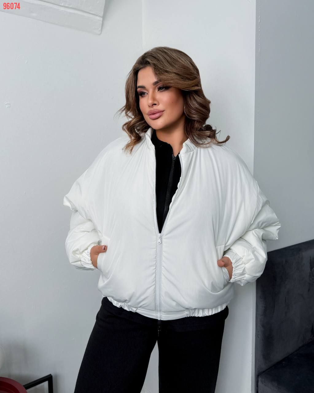 Заміри на бомбер:48-50 Ог 116 см, резинка 100-130 см, плече 26 см, рукав 58 см, спинка 71 см.