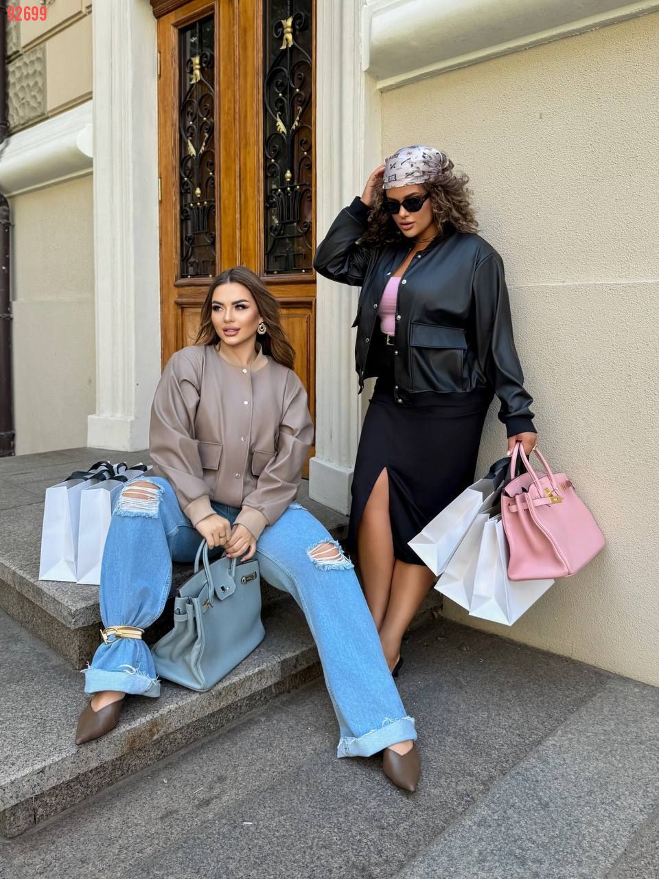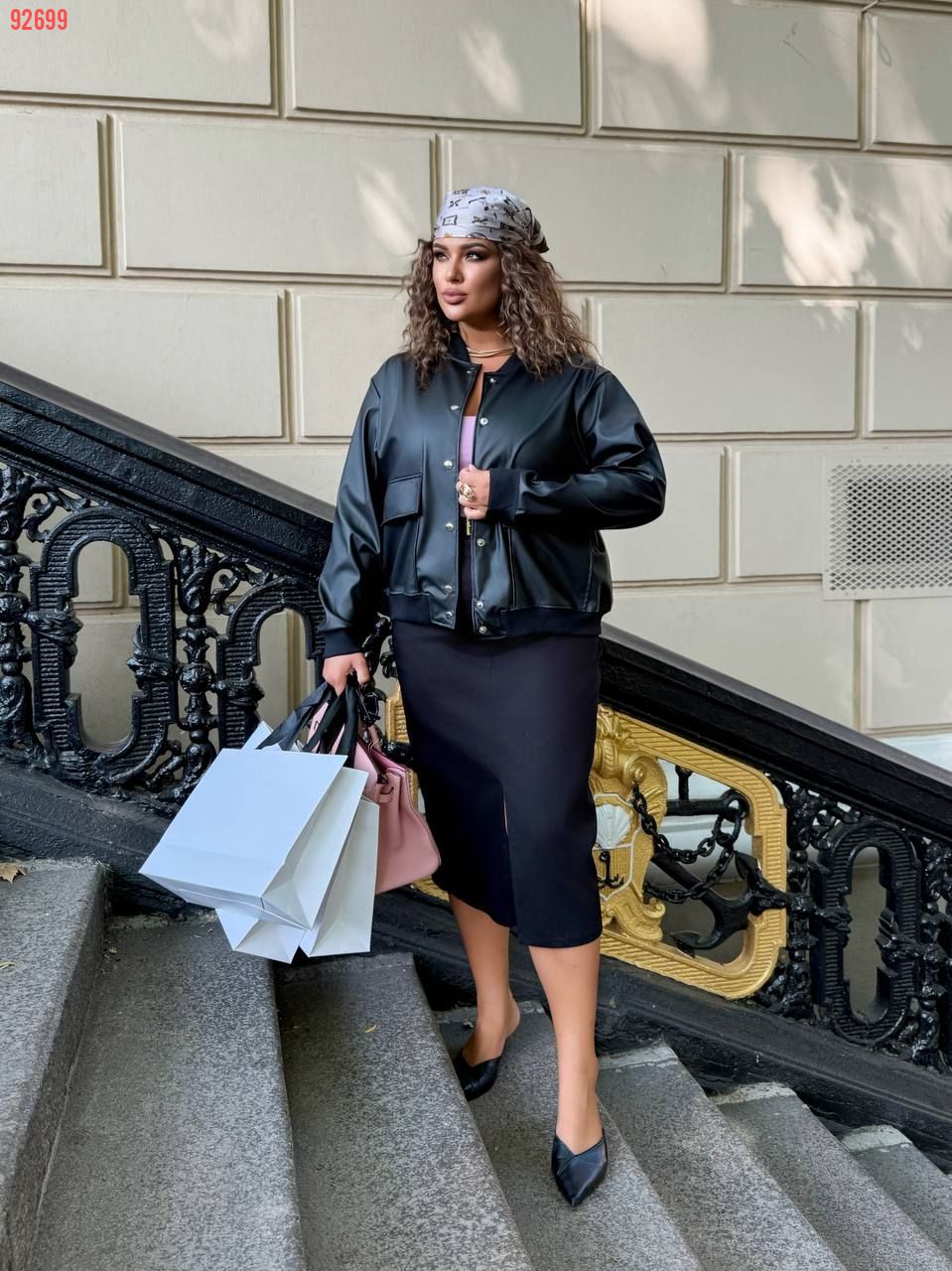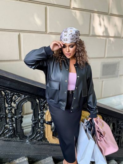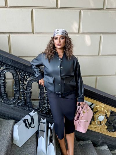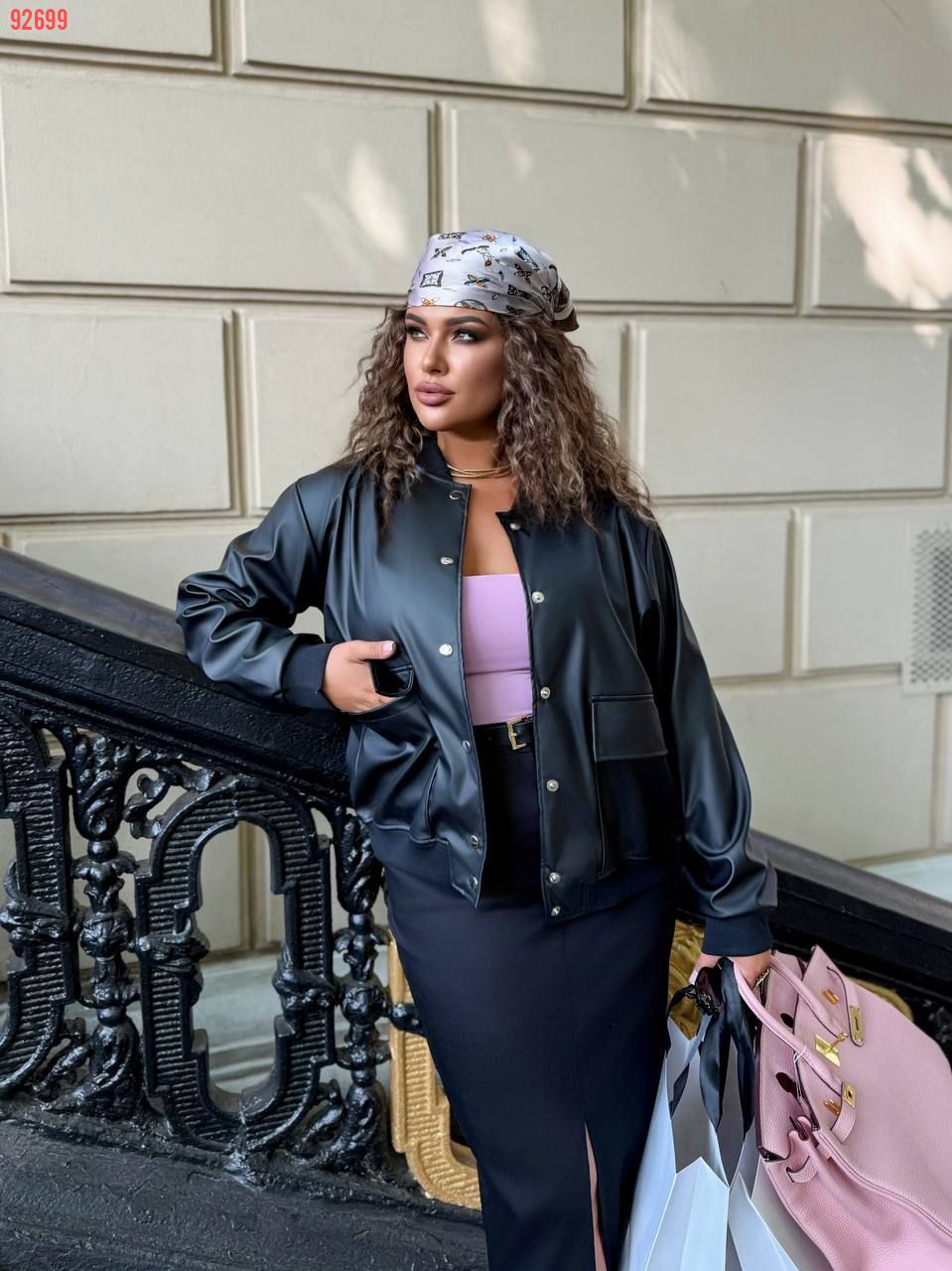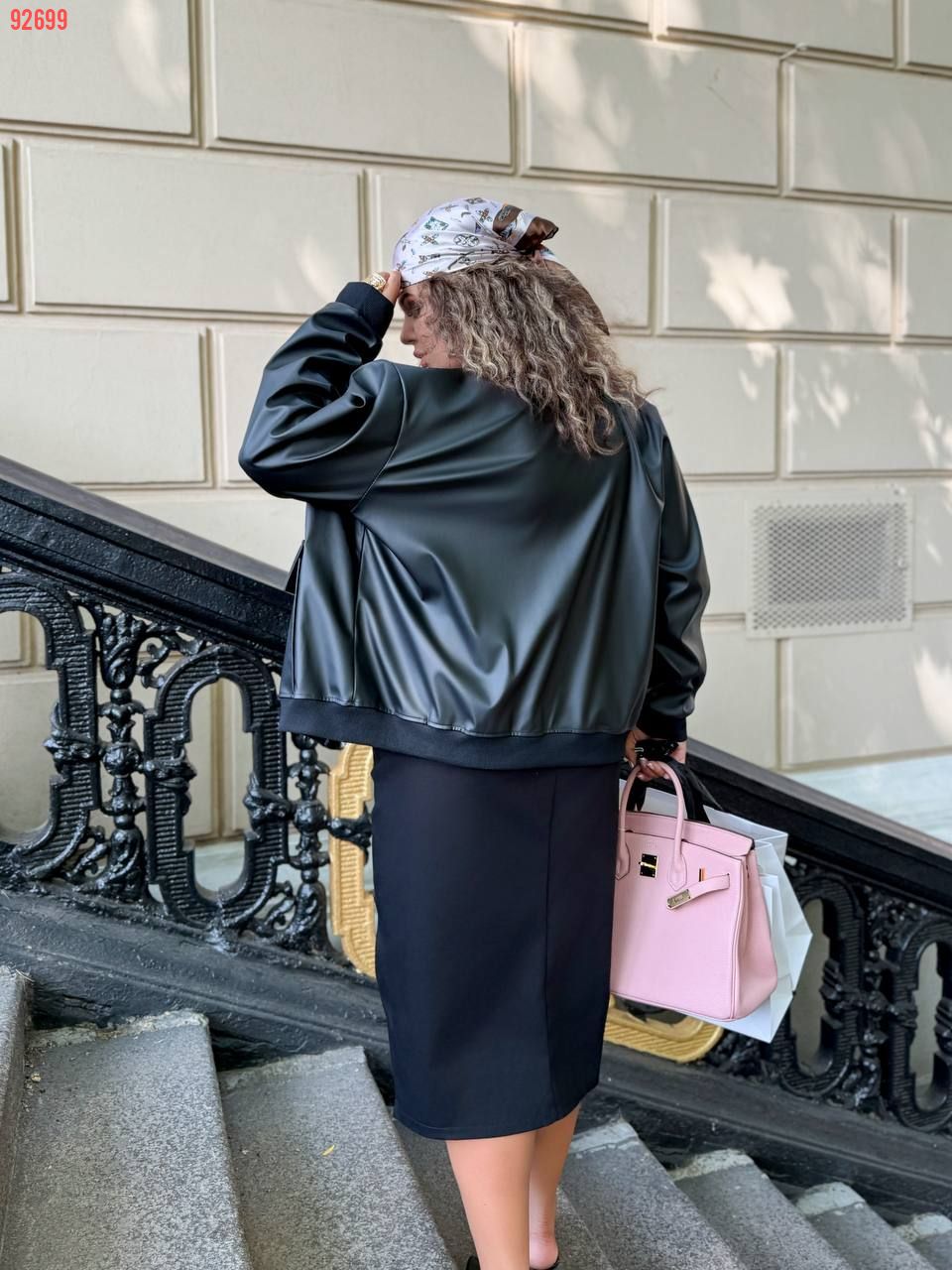Матеріал: Екошкіра на байці.На горловині,манжетах та на рукавах Рибана