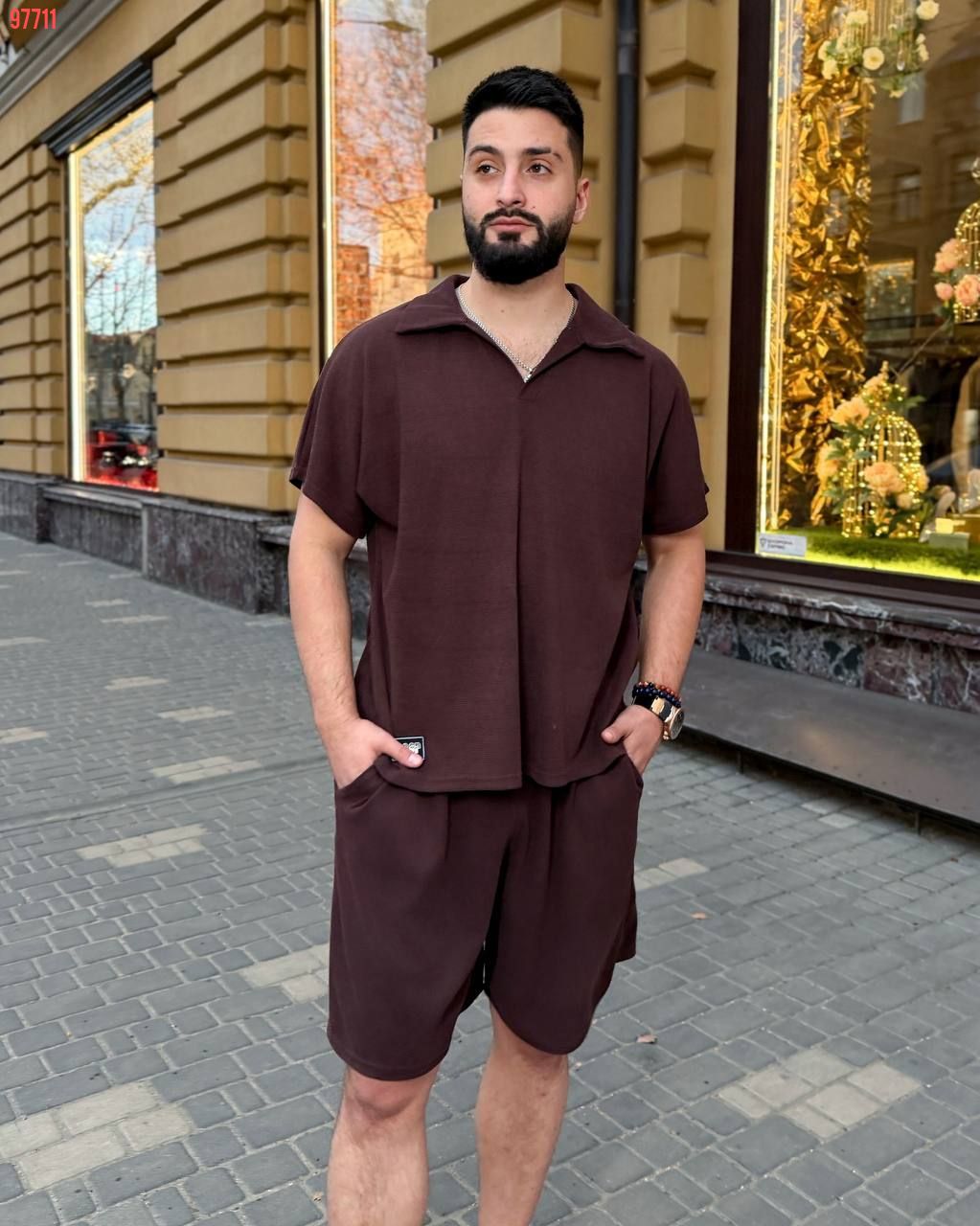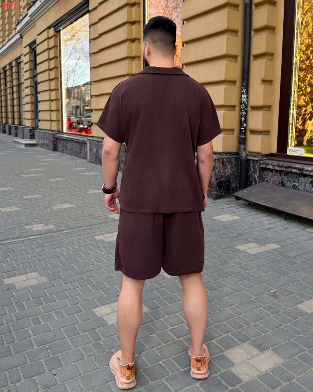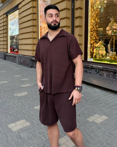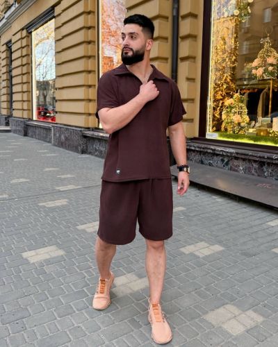 Чоловічий стильний костюм з шортами шоколад №97711