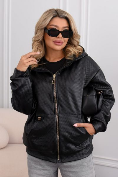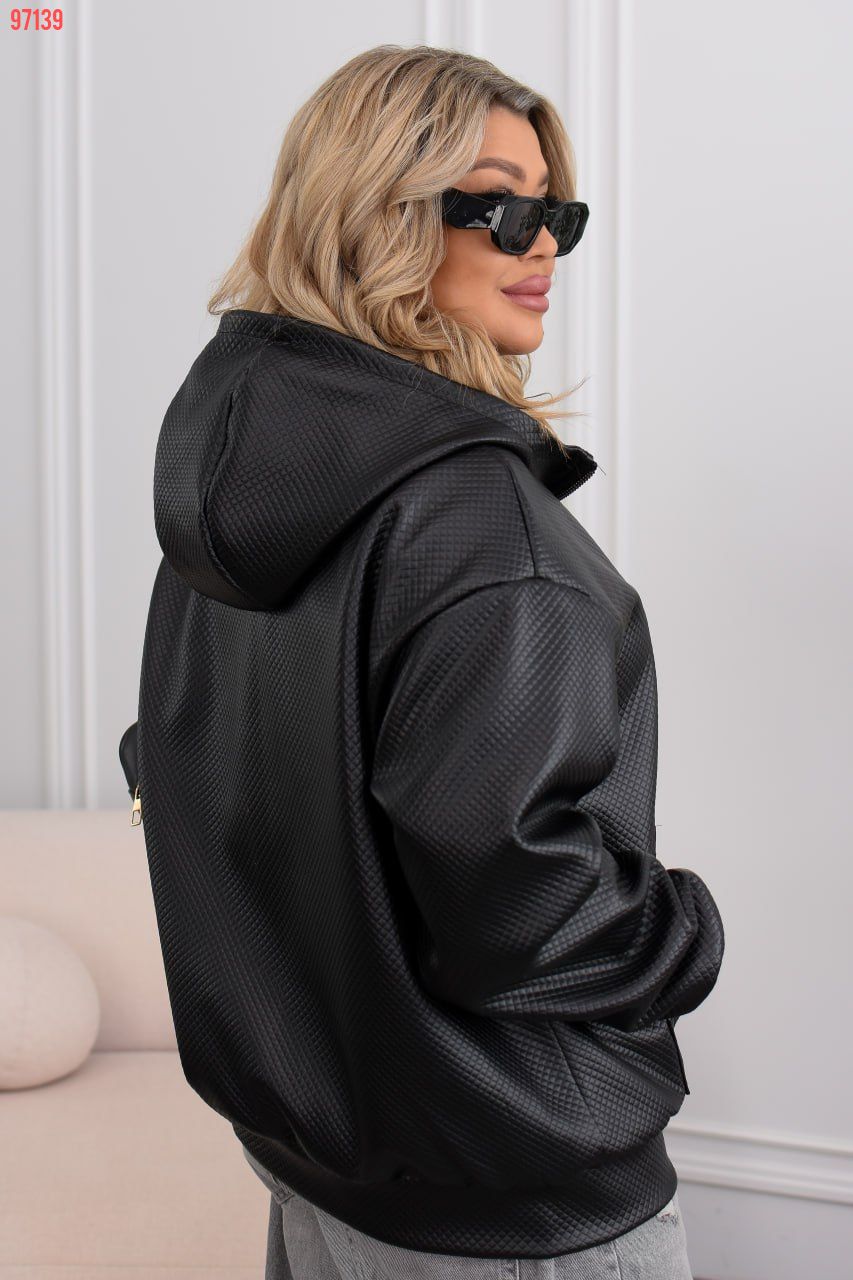 Демісезонна куртка-бомбер must have: капюшон, водонепроникна еко-шкіра, два накладні кармани, підкладка. Мінімалізм, що тримає форму та рятує від вітру й дощу.