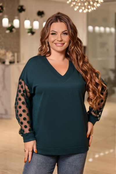Розмір 54-56 Блуза 71 см., рукав- від горловини 71 см, ОГ від 118 до 126 см.