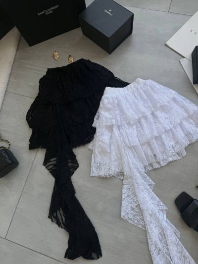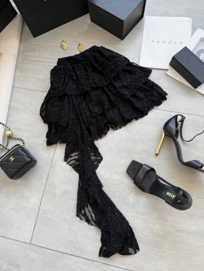 Ефектна спідниця з асиметричним воланом чорна №97746