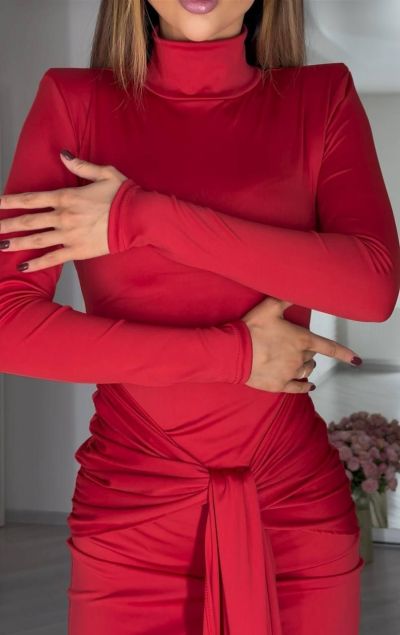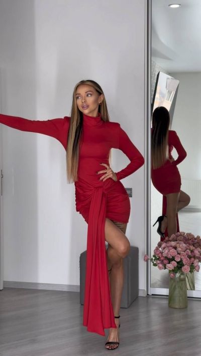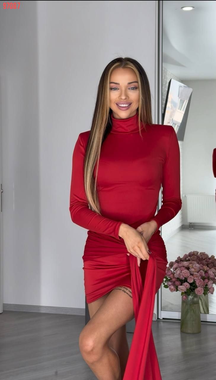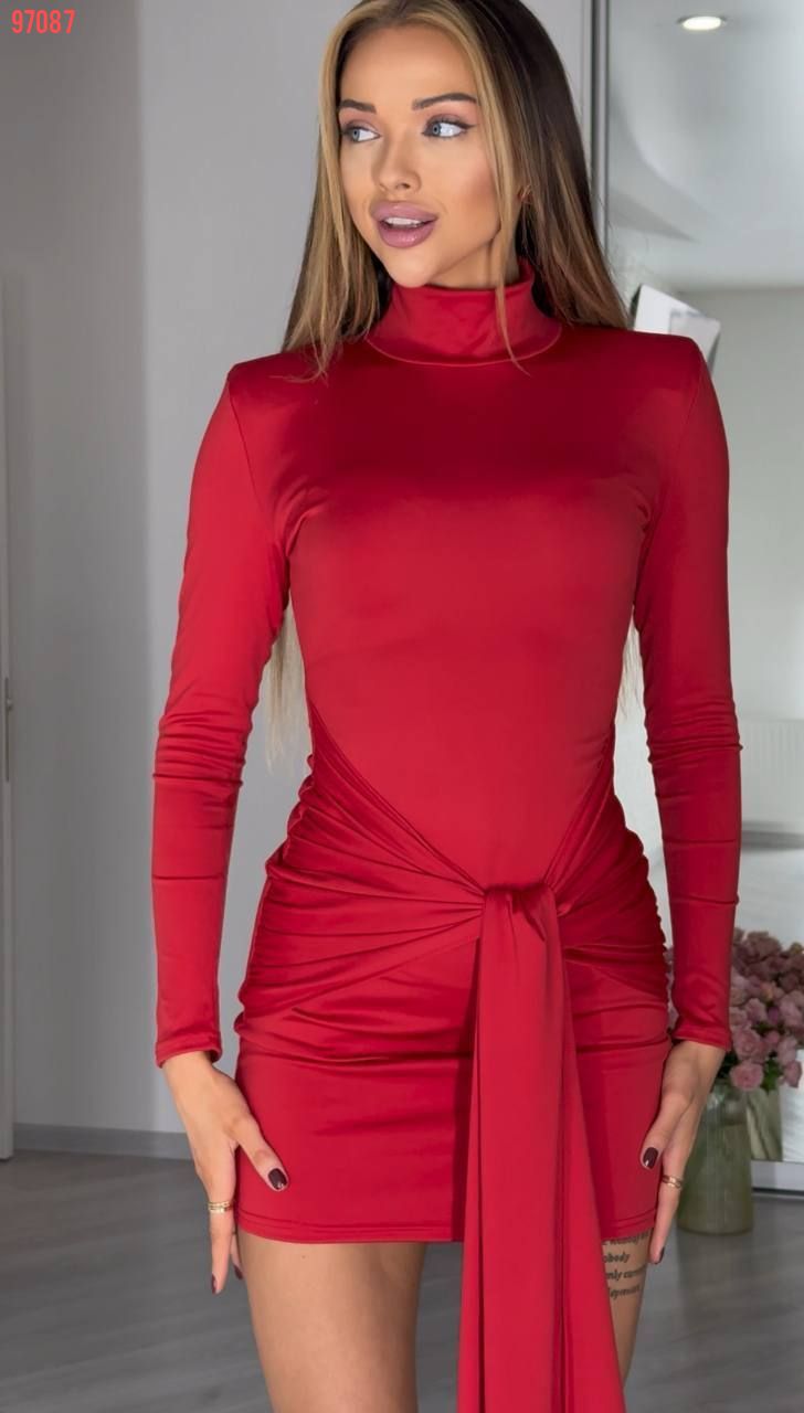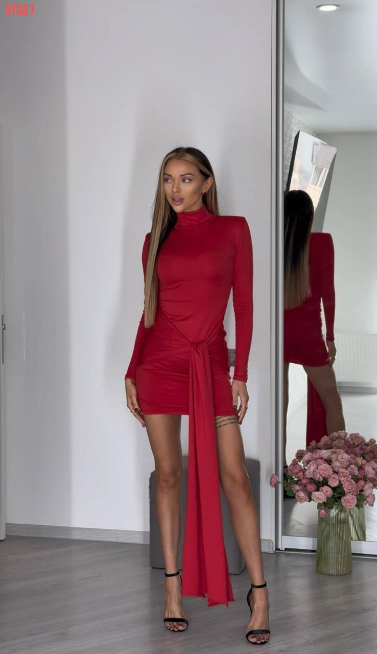 Елегантна сукня в довжині міні в приголомшливих модних відтінках цього сезону. Крій сукні підкреслює фігуру, а акцентне драпірування створює витончену лінію талії, витягуючи силует та притягуючи погляди. Особливість цієї сукні – шлейф на поясі, який підкреслить твою індивідуальність