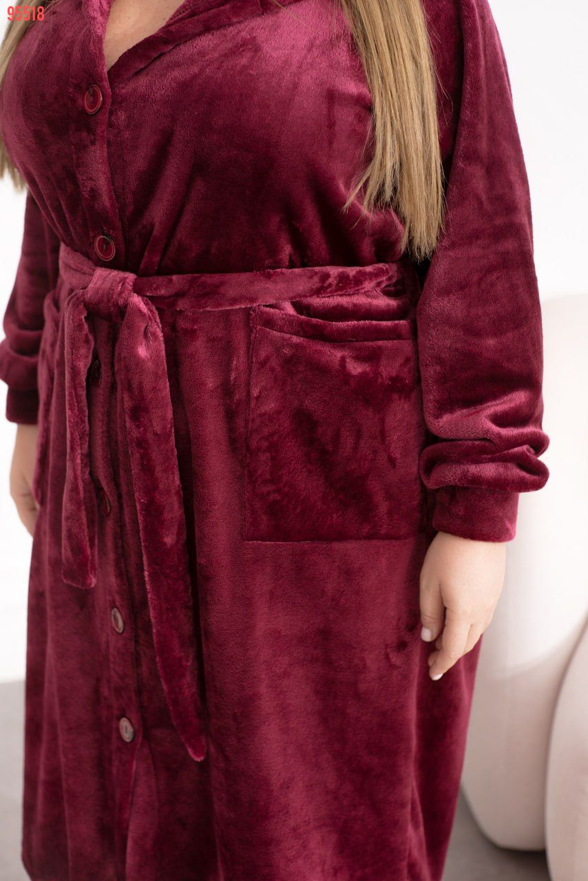 Твій новий улюблений халат – про ніжність, тепло і турботу щодня.Він ніжно огортає, зігріває й дарує комфорт після насиченого дня. Застібка на ґудзики, капюшон, довгі рукави з манжетами та практичні накладні кишені створюють ідеальне поєднання стилю та зручності.