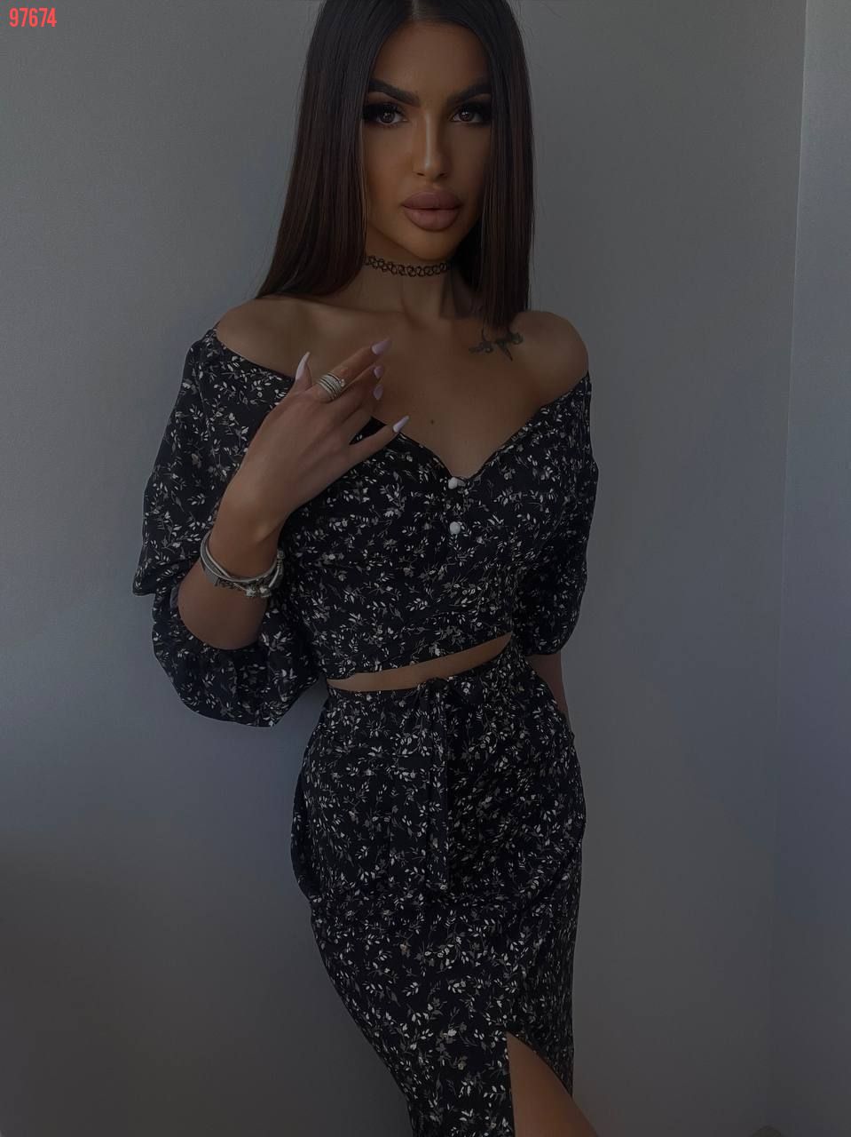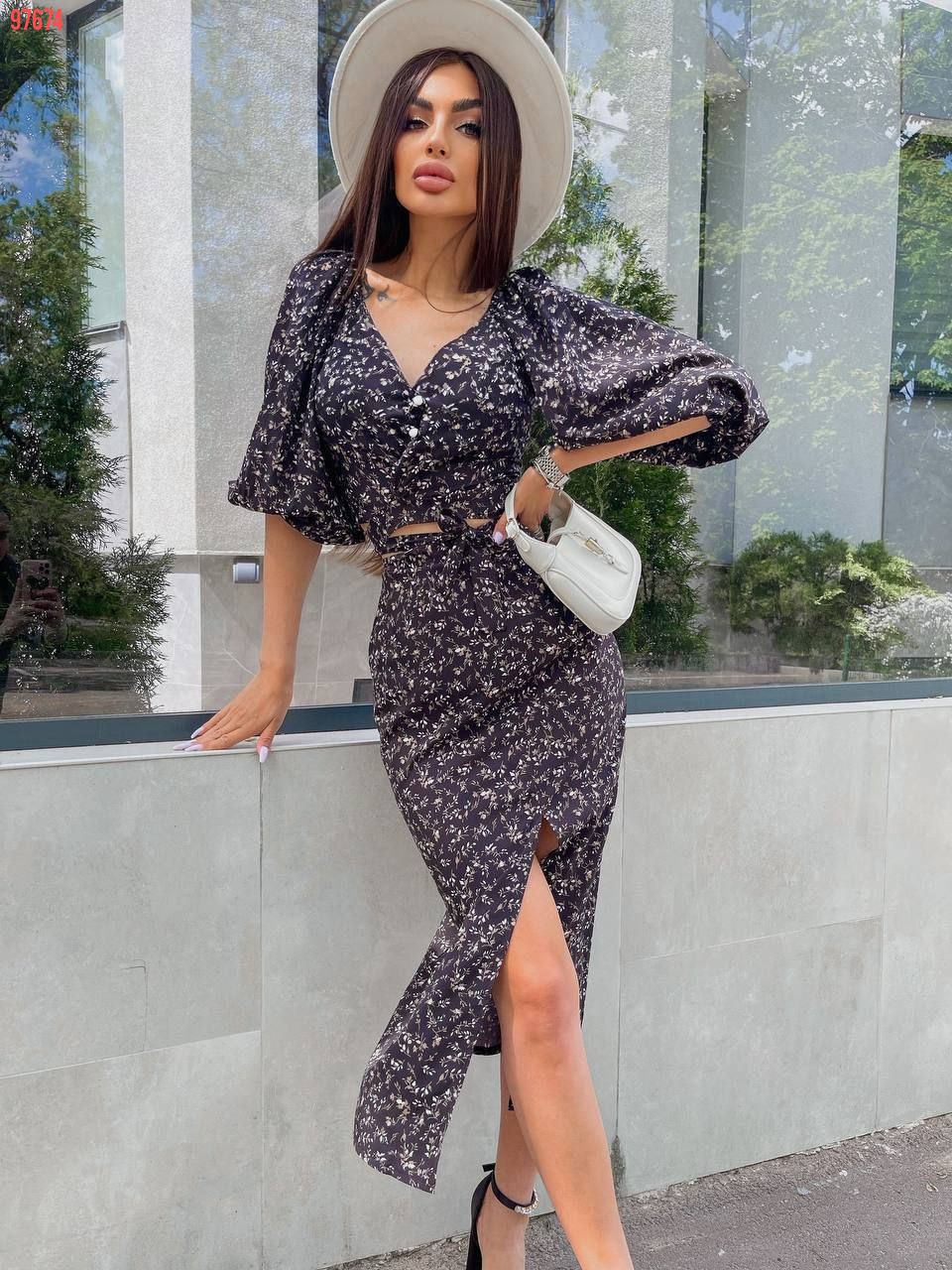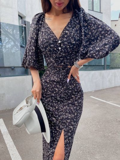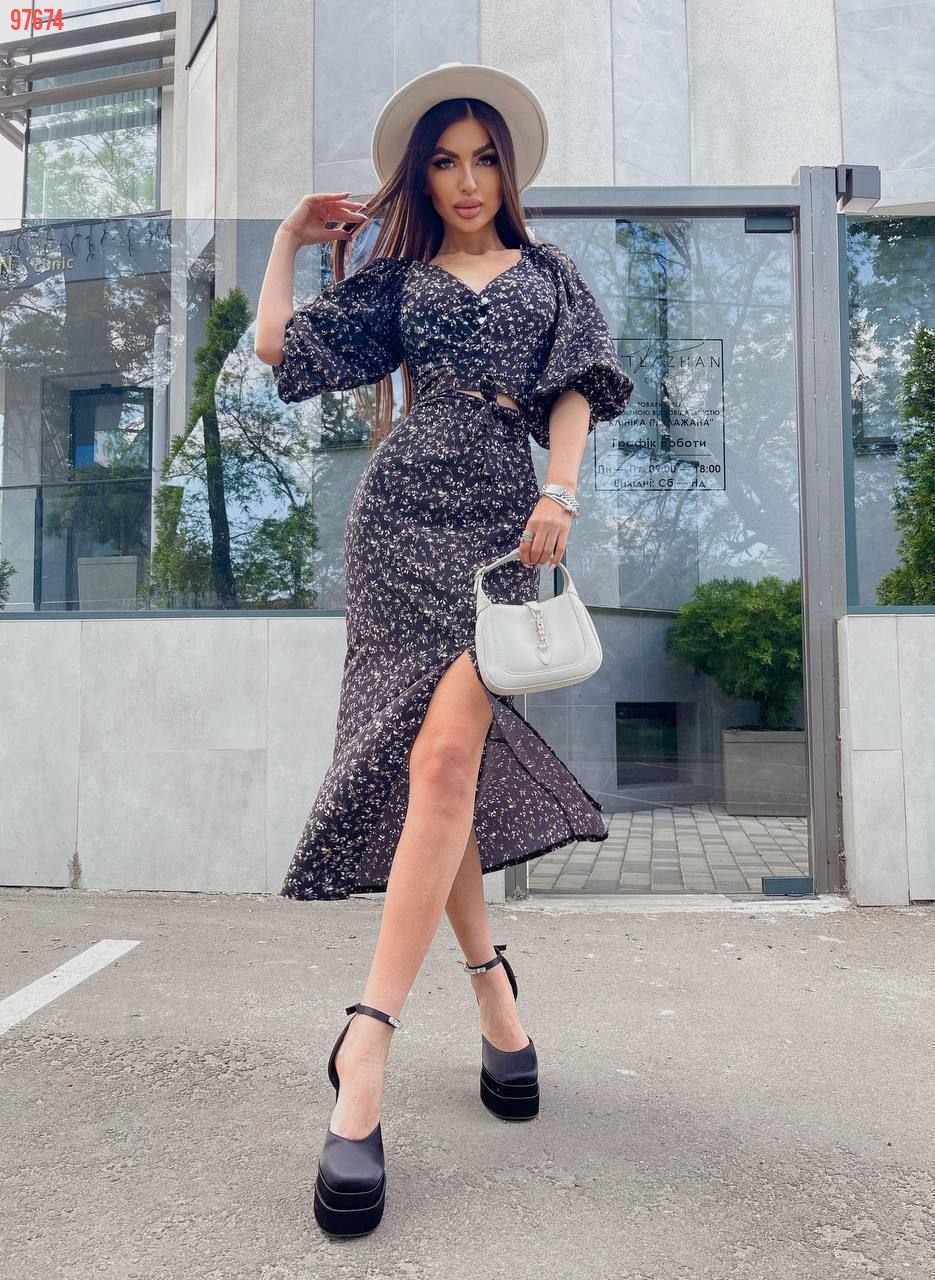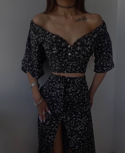 Ось і настали сонячні,теплі дні. ми вам пропонуємо шалено красивий і жіночний костюм, який складається з топу та спіднички з пікантним розрізом на лівій ніжці