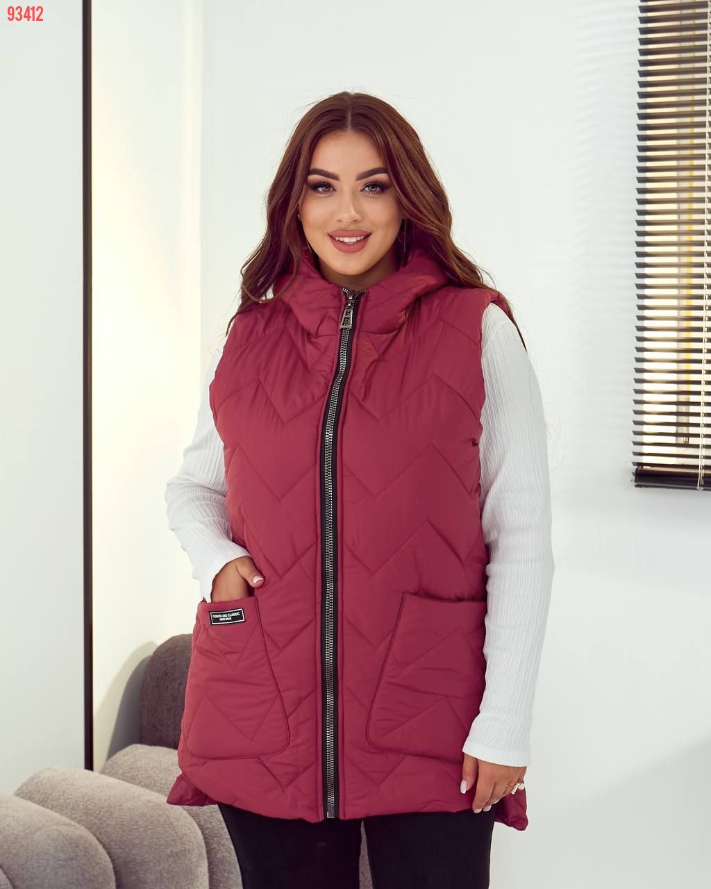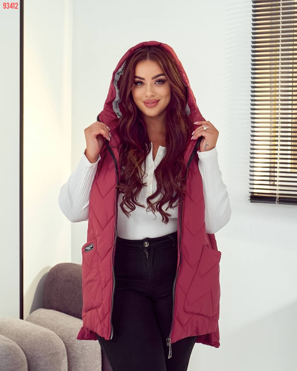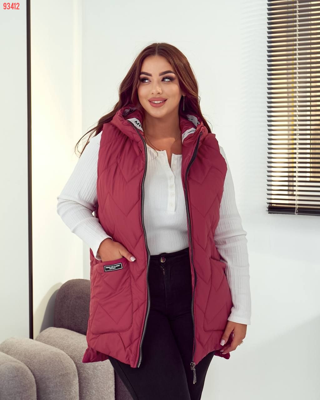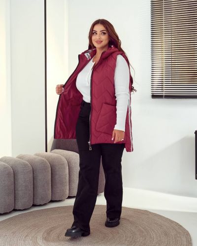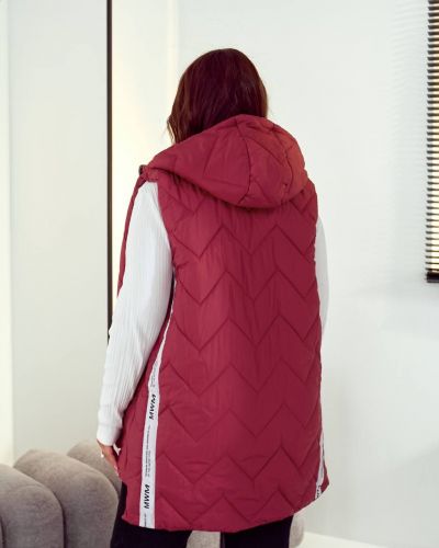 Стильна стегана жилетка прямого крою з накладними кишенями, зручний глибокий капюшон, декорована лампасами, якісна фурнітура.