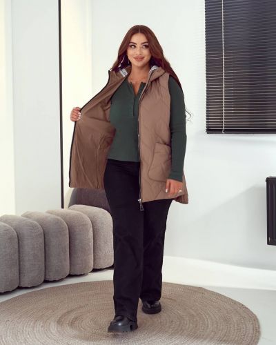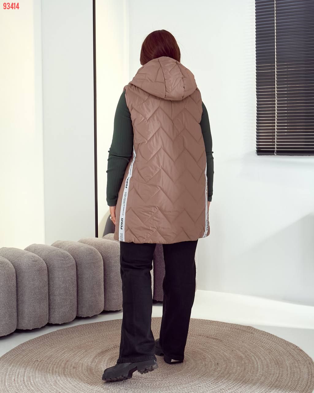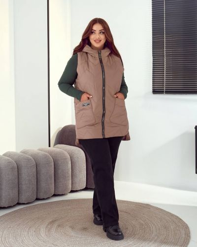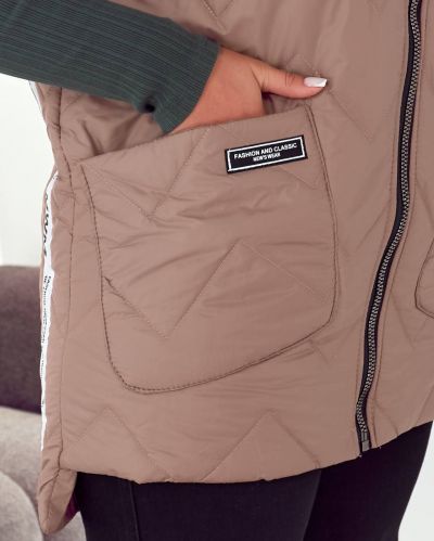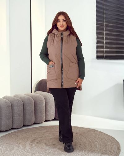 Стильна стегана жилетка прямого крою з накладними кишенями, зручний глибокий капюшон, декорована лампасами, якісна фурнітура.