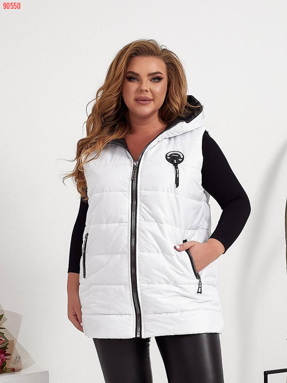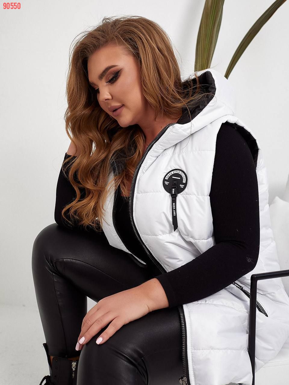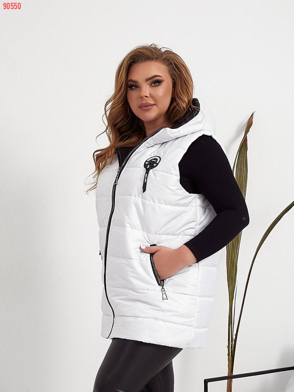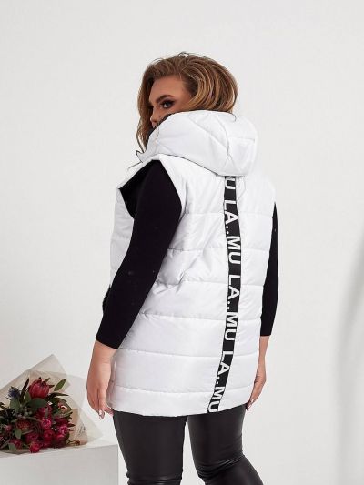 Стильна стегана жилетка прямого крою з кишенями на змійці, зручний глибокий капюшон, декорована лампасом, якісна фурнітура.