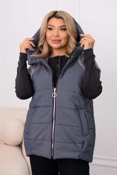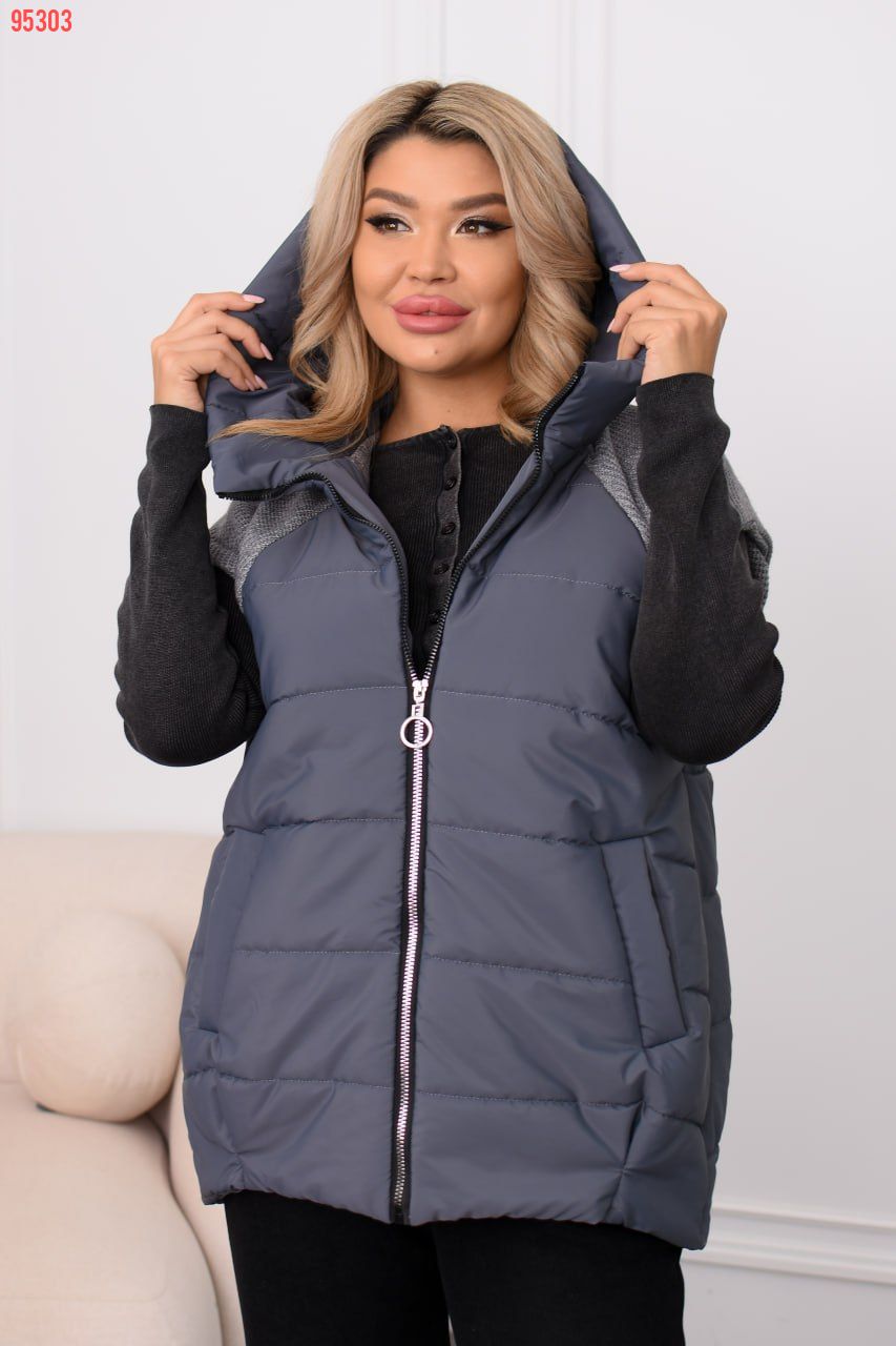 Комфортна жилетка з плащівки Еммі на підкладці, утеплена силіконом 150 г/м² – легка й тепла на щодень. Трикотажні рукави додають затишку, а стьобана фактура тримає наповнювач рівномірно навіть після прання. Ідеальна для прохолоди. Має вшитий капюшон.