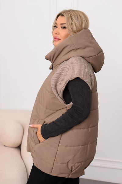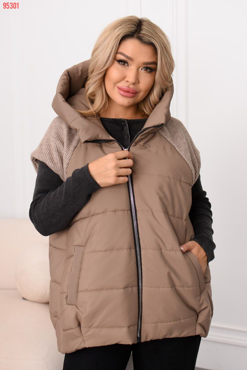 Комфортна жилетка з плащівки Еммі на підкладці, утеплена силіконом 150 г/м² – легка й тепла на щодень. Трикотажні рукави додають затишку, а стьобана фактура тримає наповнювач рівномірно навіть після прання. Ідеальна для прохолоди. Має вшитий капюшон.
