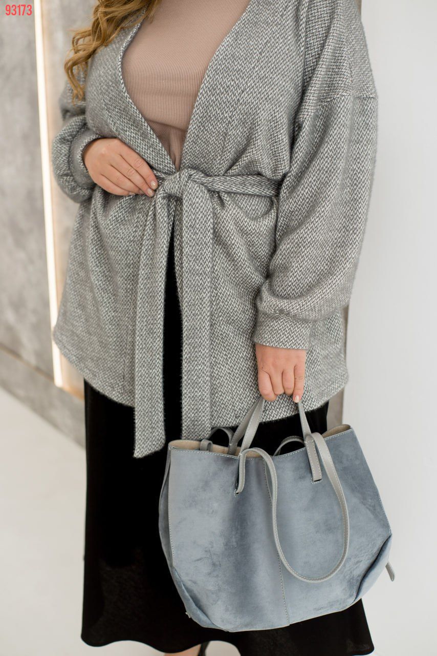 Короткий кардиган із надзвичайно м’якої та приємної на дотик тканини подарує вам комфорт і стиль у прохолодні дні. Його лаконічний крій і зручні вшиті кишені роблять його практичним вибором для будь-якого образу. Пояс у комплекті дозволяє підкреслити талію та створити елегантний силует. Ідеальний для повсякденних виходів, він додасть вашому стилю легкості, затишку та витонченості.