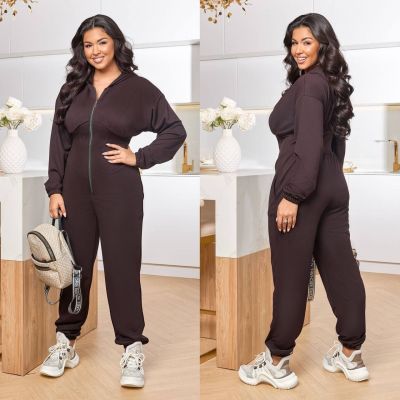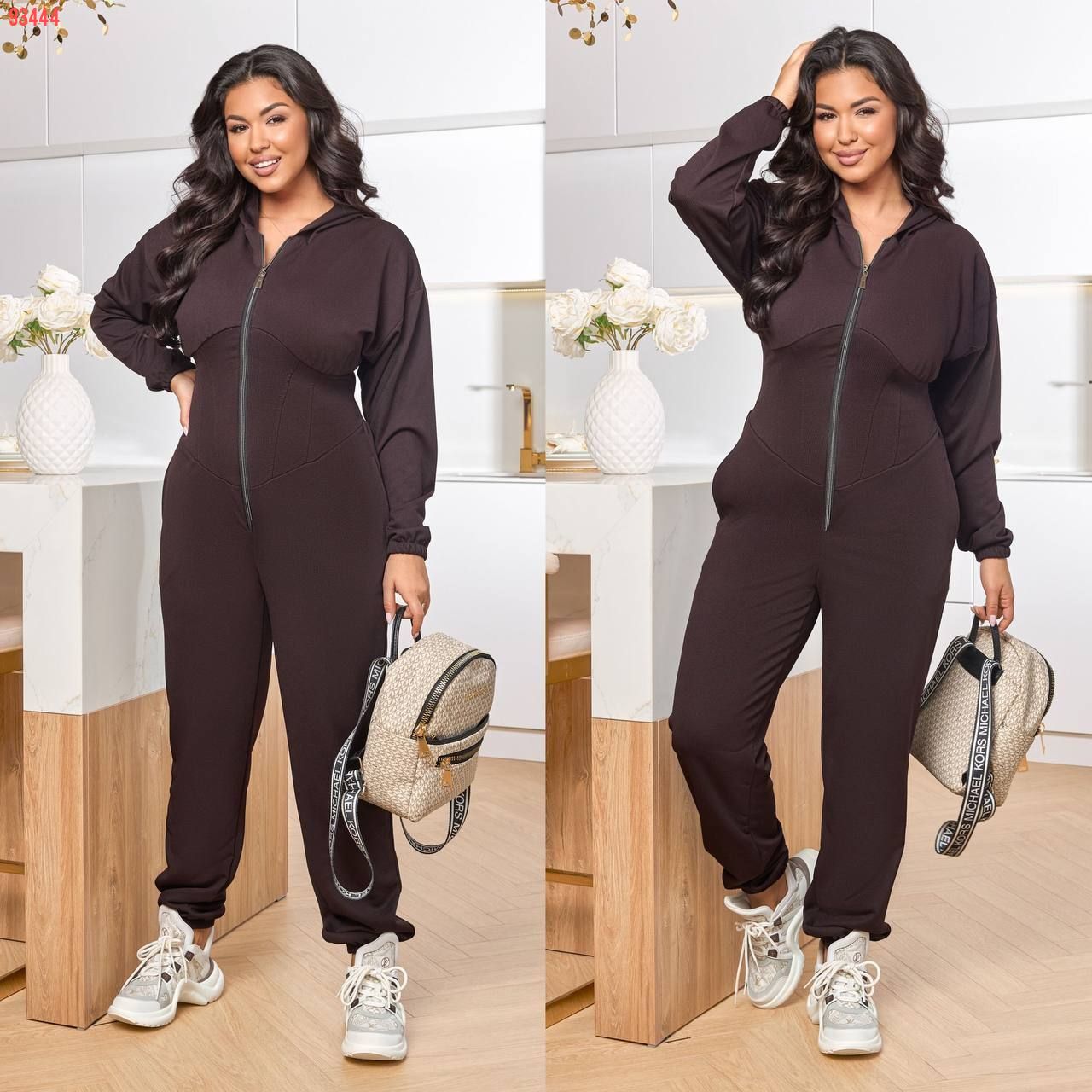 Стильний комбінезон , на блискавці , рукав та штани на резинці , з капюшоном , талія корсет .