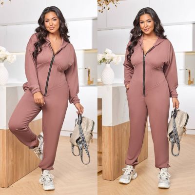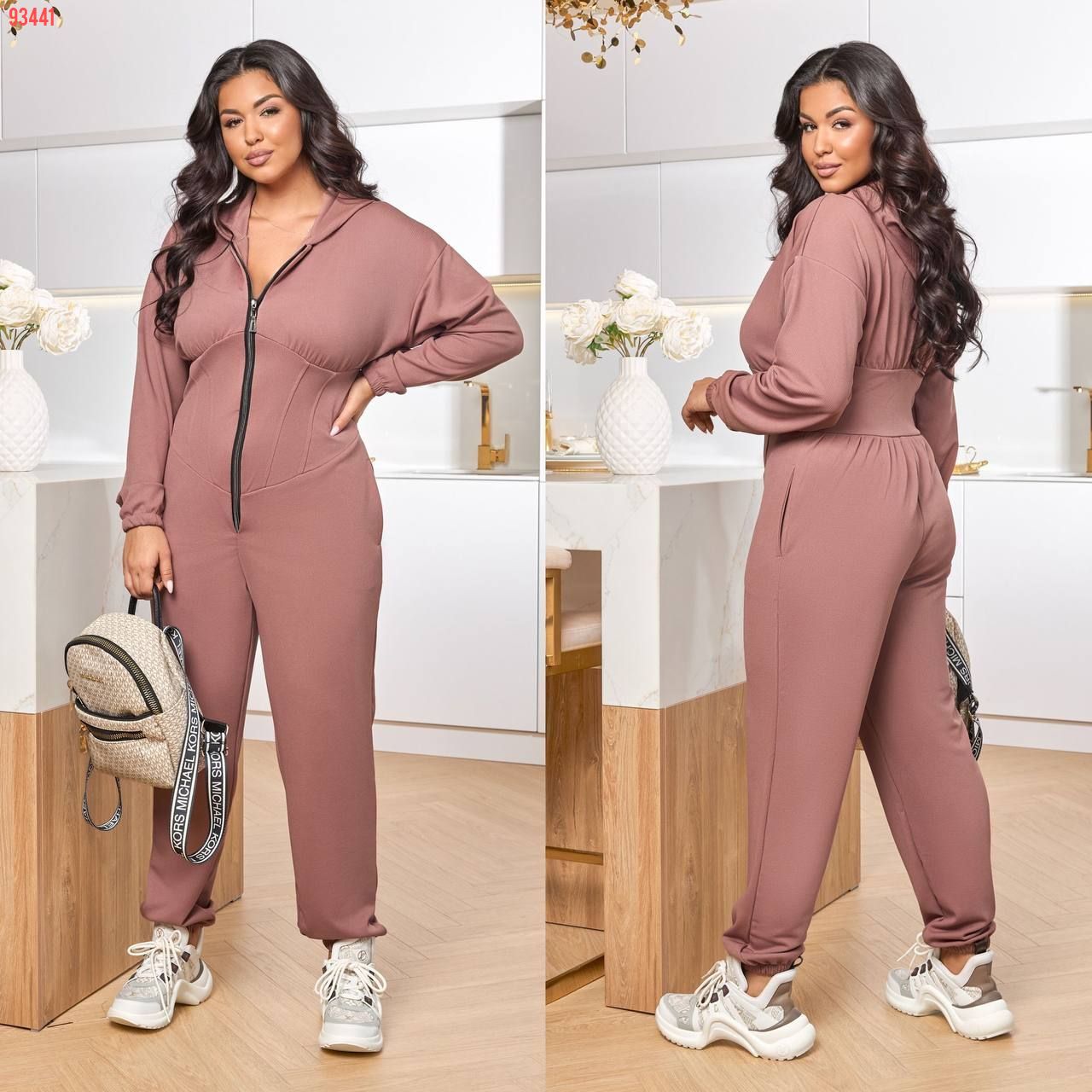 Стильний комбінезон , на блискавці , рукав та штани на резинці , з капюшоном , талія корсет .