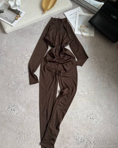 Комфортний та максимально стильний комбінезон шоколад №97319