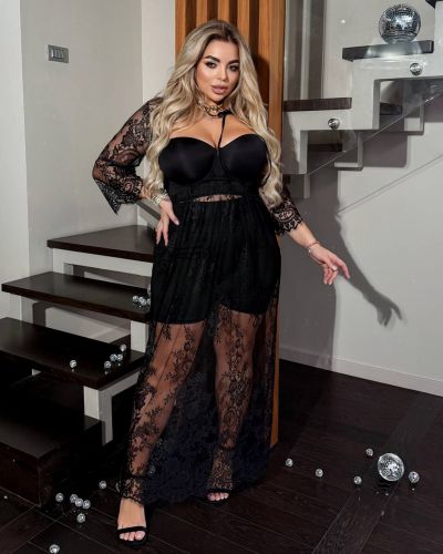 Спідниця та болеро – із вишуканого французького мережива Шантільє, яке додає легкості та жіночності Талія спідниці на зручній гумці. Довжина 100 см. До комплекту додаються знімні шортики з еластичної, приємної на дотик тканини.