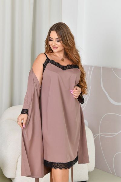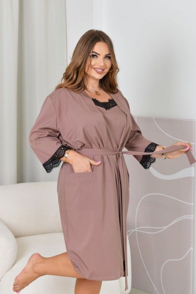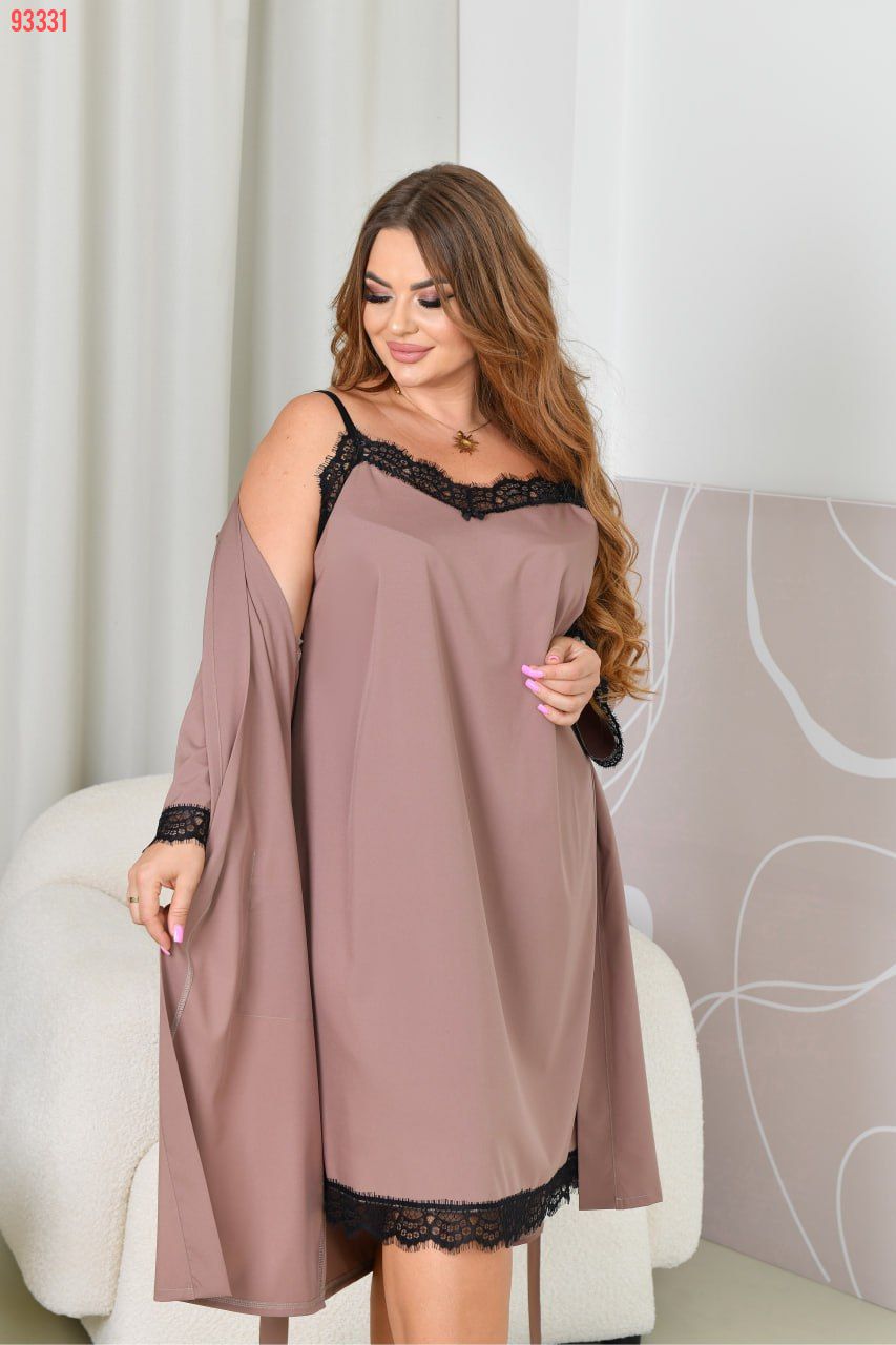 Неймовірно жіночний домашній комплект: халат з нічною сорочкою (виготовлений із софту, тканина розтяжності не має).