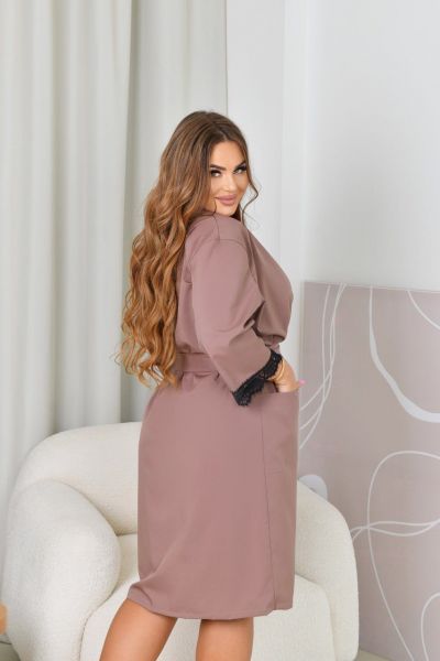Халат на запАх, під пояс із основної тканини. Рукав 3/4 декорований ніжним мереживом. Є накладна кишеня.