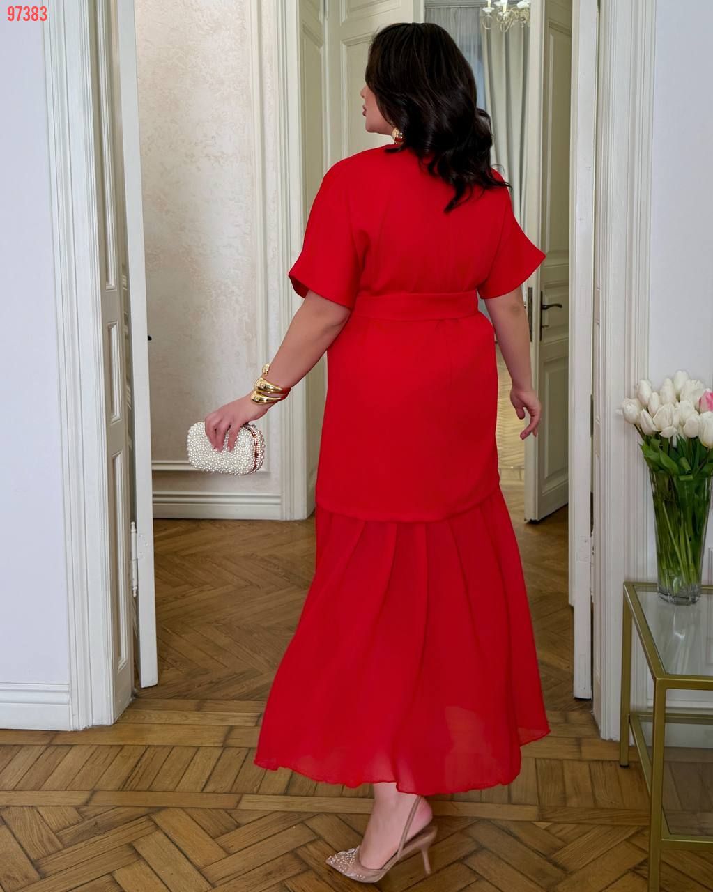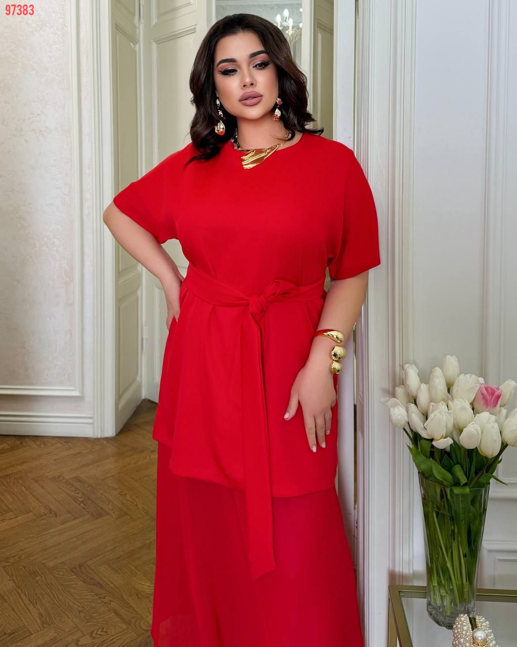 Тканина: сукня костюмка, спідниця шифон. В комплекті пояс, сукню можна носити під пояс, або без нього, чи додати стильний ремінець.