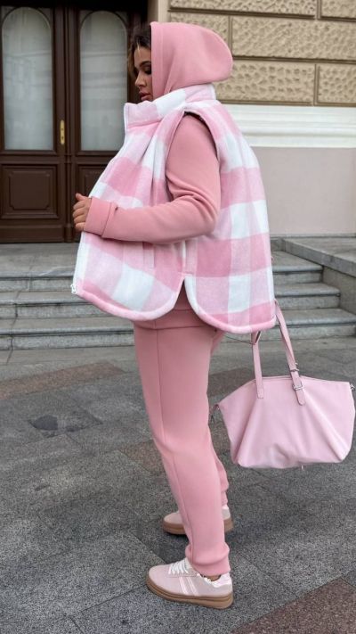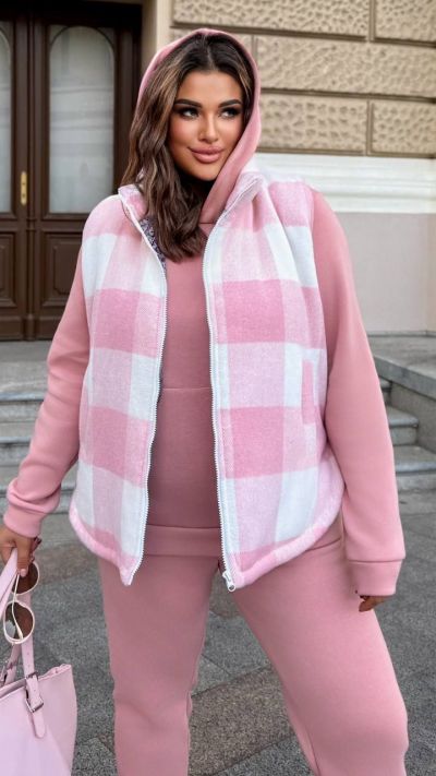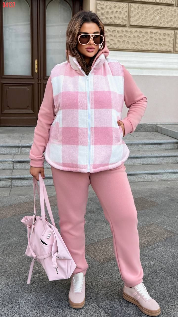 Осінній утеплений костюм трійка - жилет + худі + штани . Жилет на блискавці , комір стійка , з кишенями .