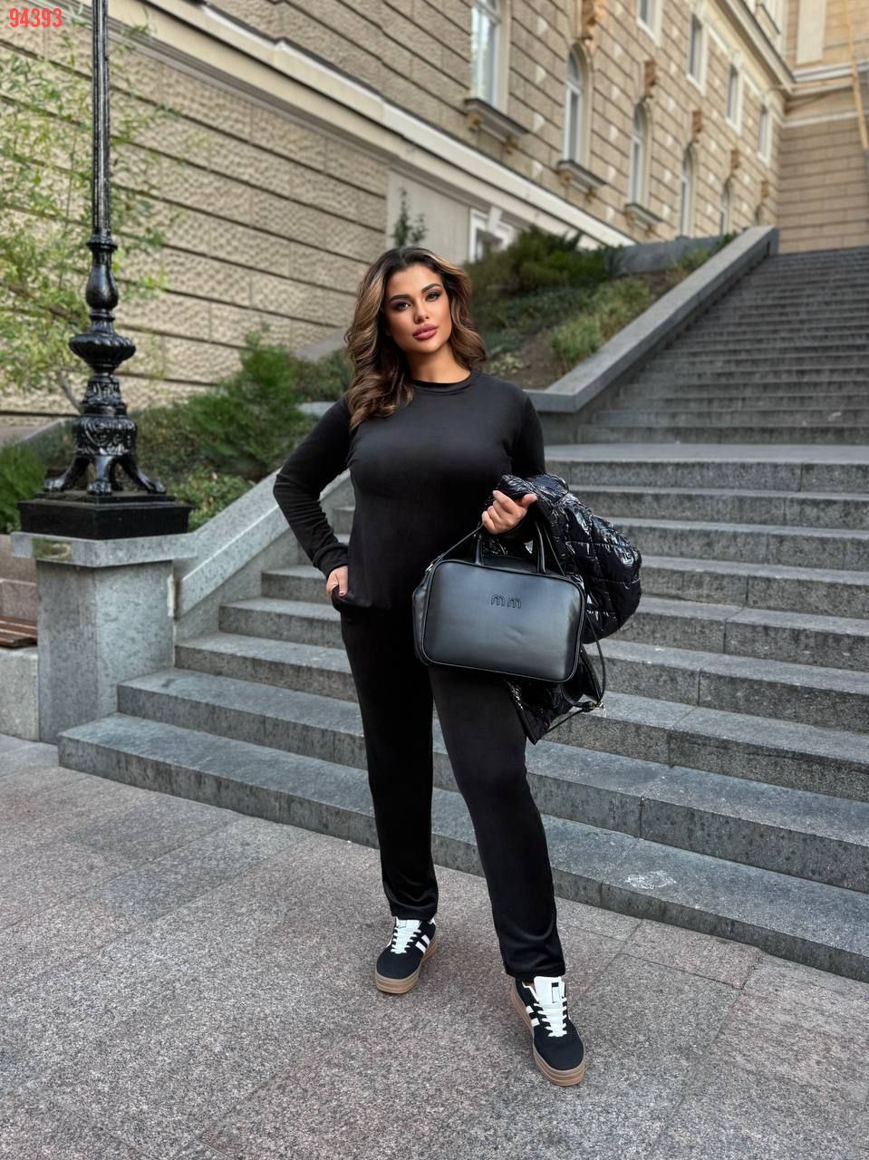 Розкіш у кожній деталі. М’який благородний блиск велюру робить цей костюм особливим – він ніби створений для вечорів, коли хочеться бути в центрі уваги. Глибока фактура тканини грає на світлі, додаючи образу шарму та вишуканості. Це вибір для тих, хто цінує комфорт і любить привертати погляди.
