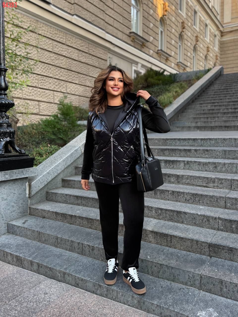 Тканина: костюм - велюр . Жилет - плащовка *монклер* - стьобана на 150 синтепоні ( переливається )