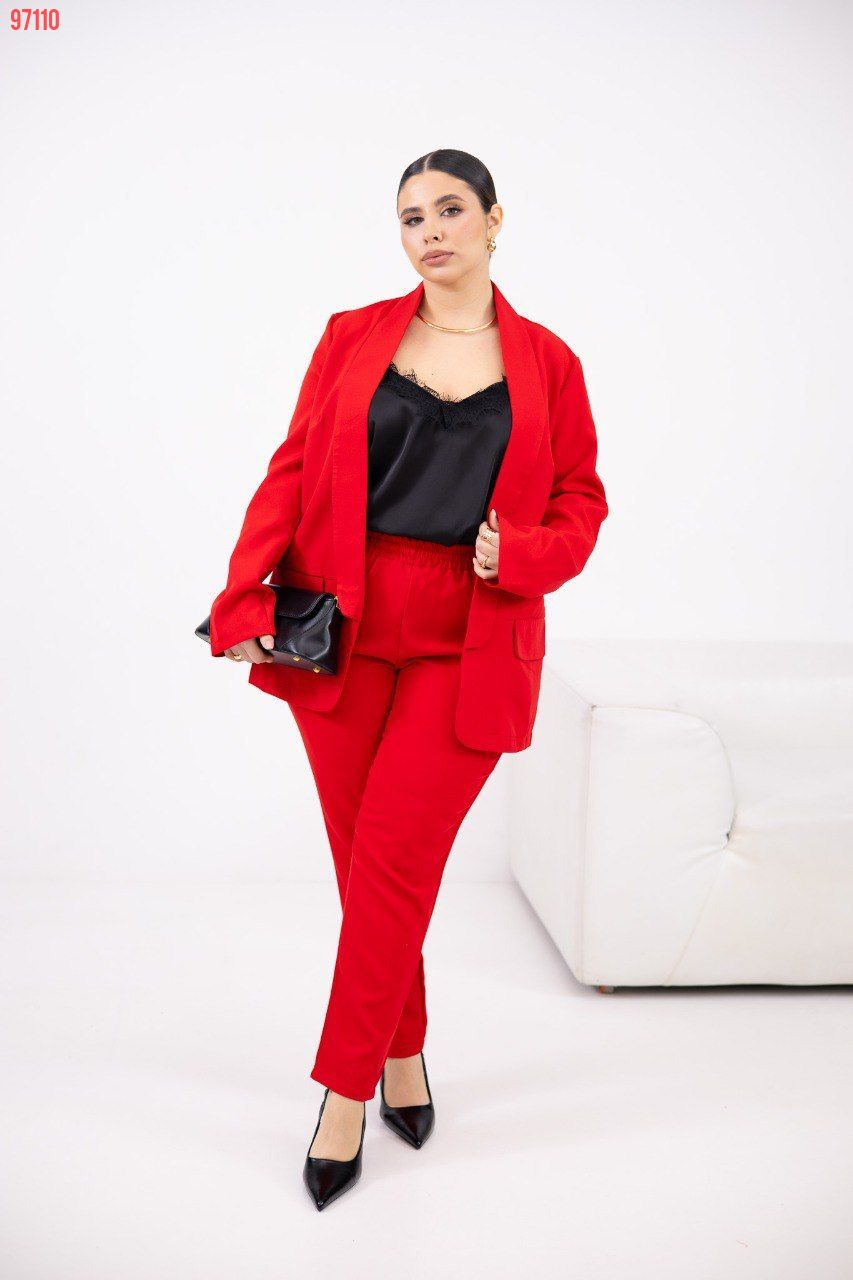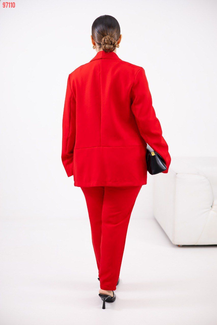 Заміри: 48-50 Пиджак по спинке 68 см, рукав 61 см, ог 110 см Майка по спинке 41 см + шлейки 21 см, ог 110 см Брюки длина 89/65 см, от 102 см, об 110 см