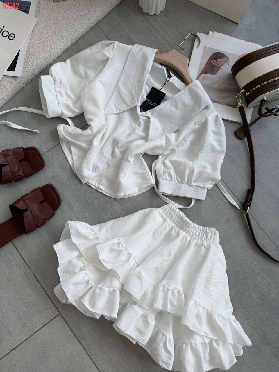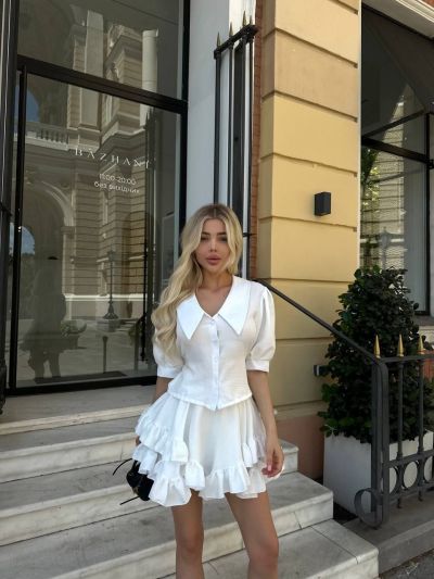 Костюм блуза+спідниця білого кольору №97242