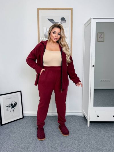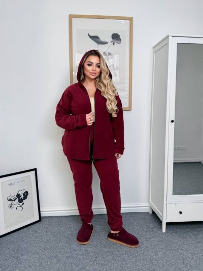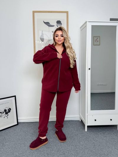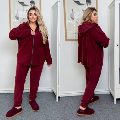 Кофта на блискавці з капюшоном , штани з високою посадкою , на манжеті , пояс на гумці , з бічними кишенями .