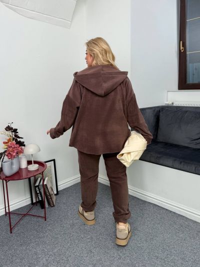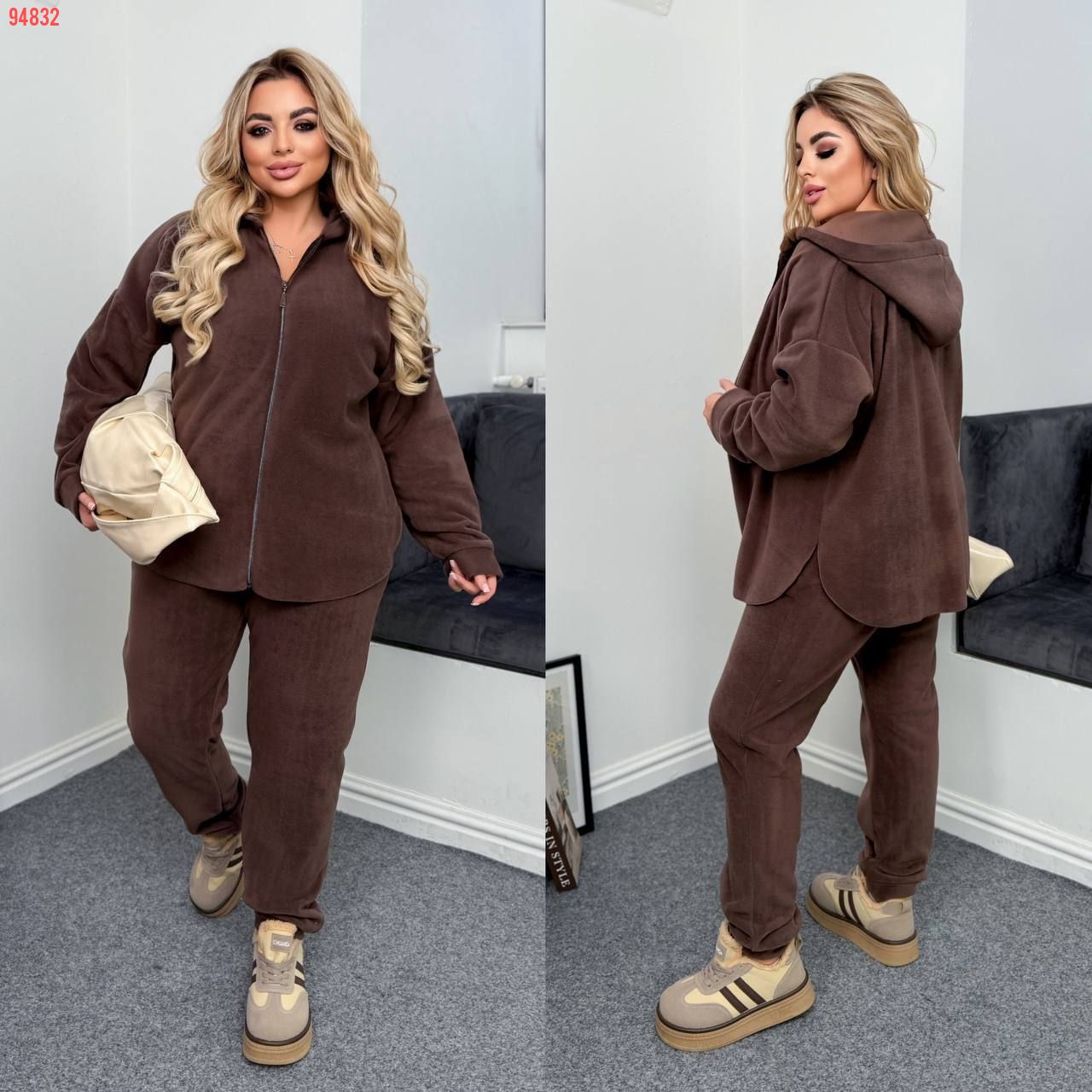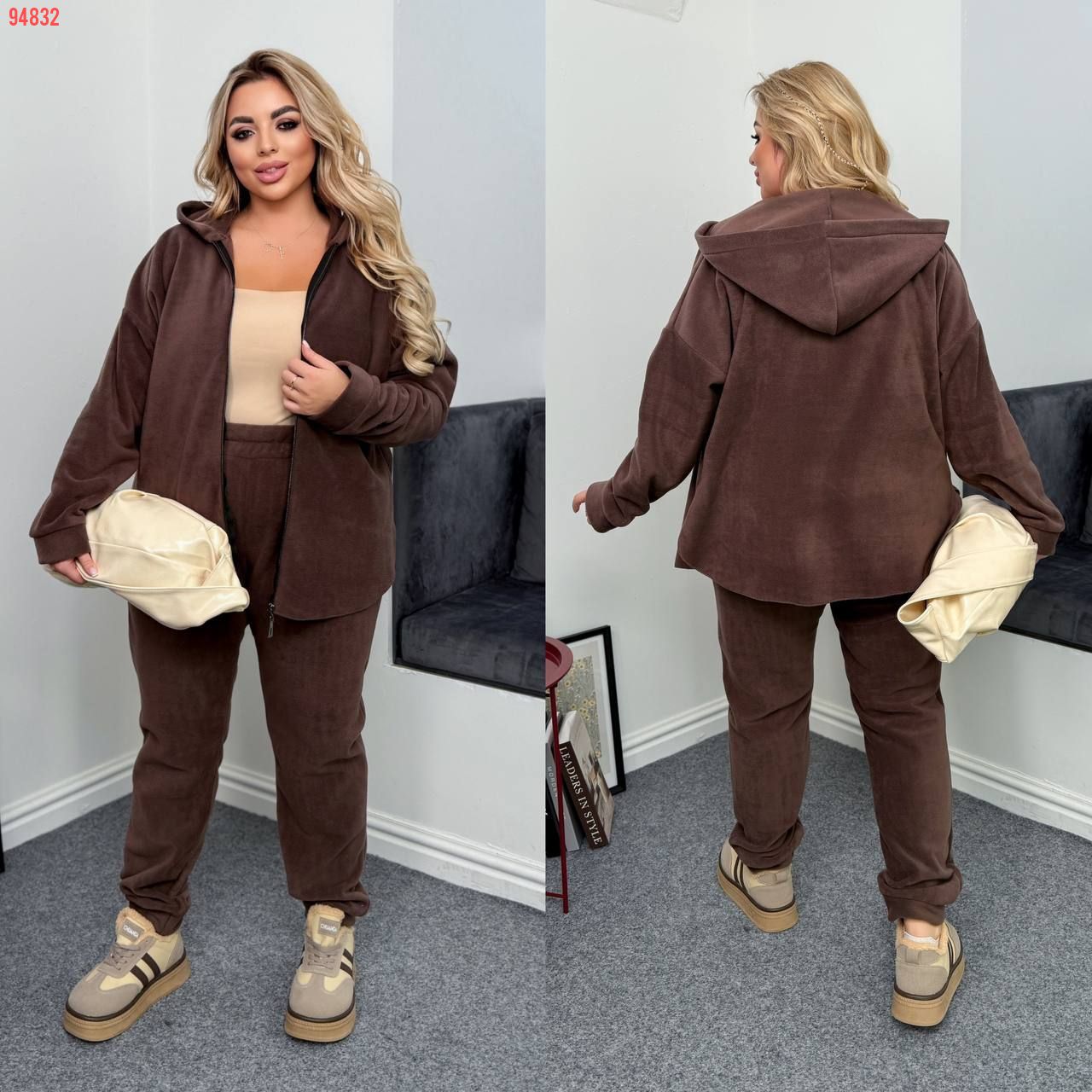 Кофта на блискавці з капюшоном , штани з високою посадкою , на манжеті , пояс на гумці , з бічними кишенями .