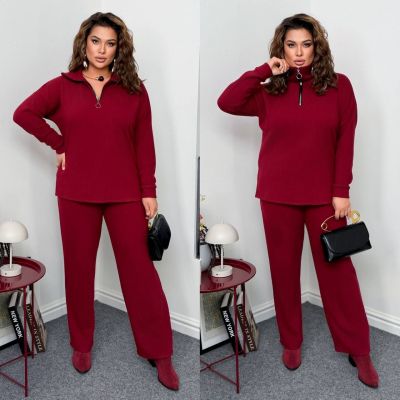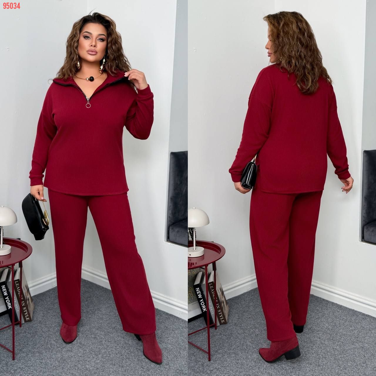 Теплий костюм на холодну пору - кофта + штани . Кофта подовжена прямого покрою , комір стійка на блискавці . Широкі штани з високою посадкою на гумці .
