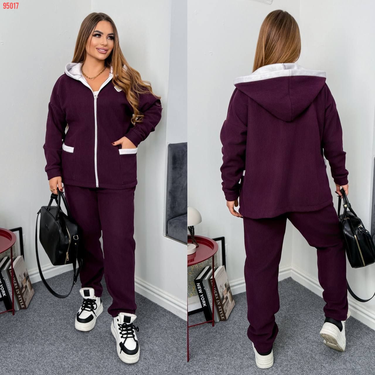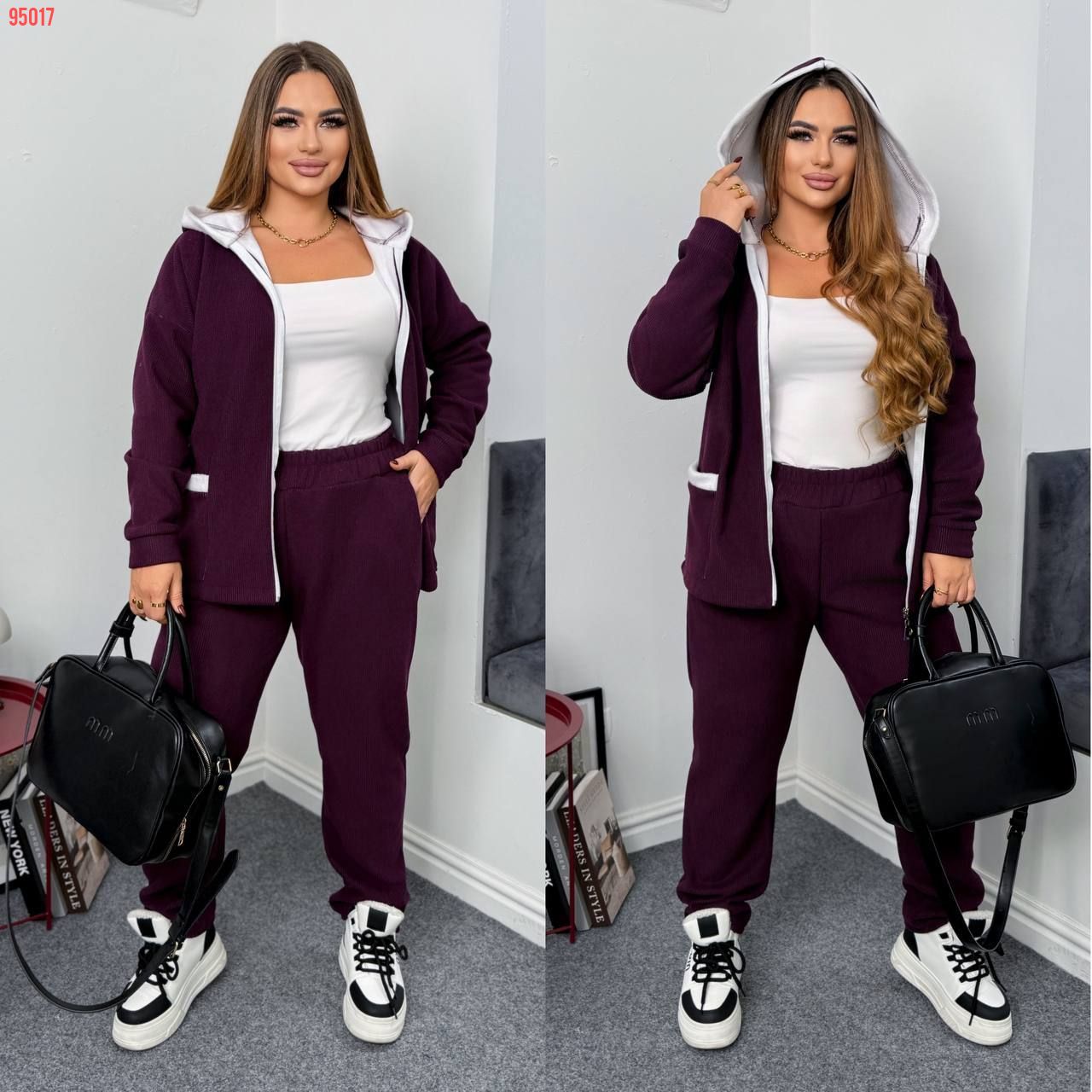 Теплий костюм на холодну пору . Стильна кофта на блискавці , з капюшоном з переду кишені . Штани з високою посадкою , пояс на гумці , бічні кишені .