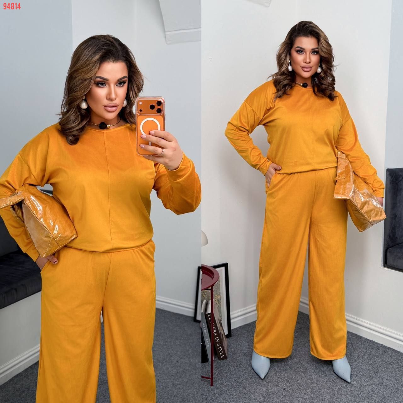 Довжина штанів : 112 см. Прогулянковий костюм двійка . Кофта зі швами на манжеті . Штани з високою посадкою , пояс на гумці .