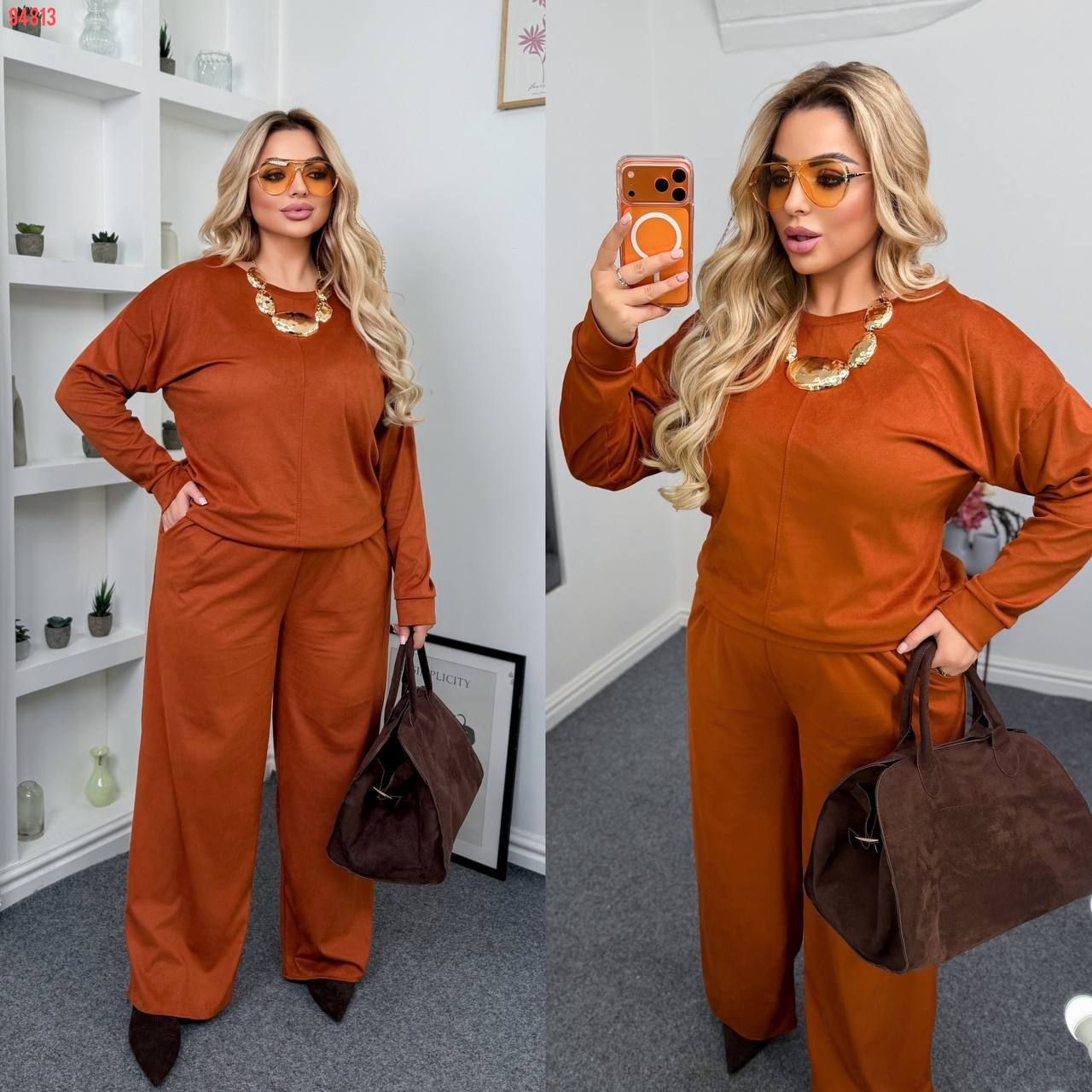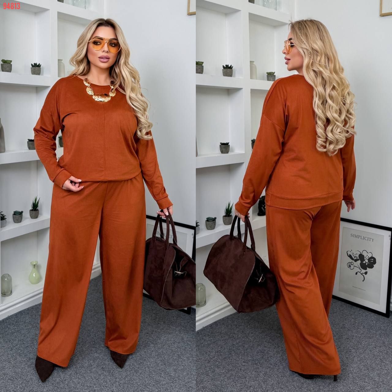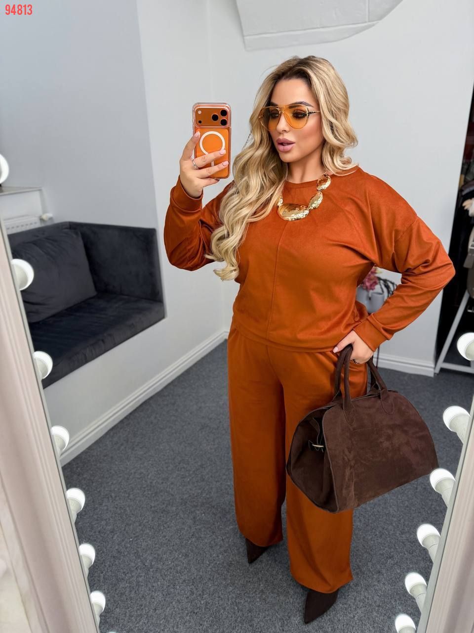 Довжина штанів : 112 см. Прогулянковий костюм двійка . Кофта зі швами на манжеті . Штани з високою посадкою , пояс на гумці .