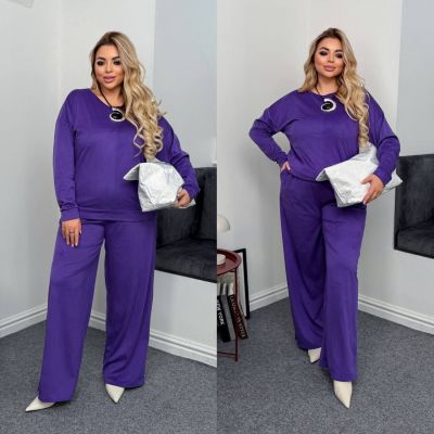 Довжина штанів : 112 см. Прогулянковий костюм двійка . Кофта зі швами на манжеті . Штани з високою посадкою , пояс на гумці .