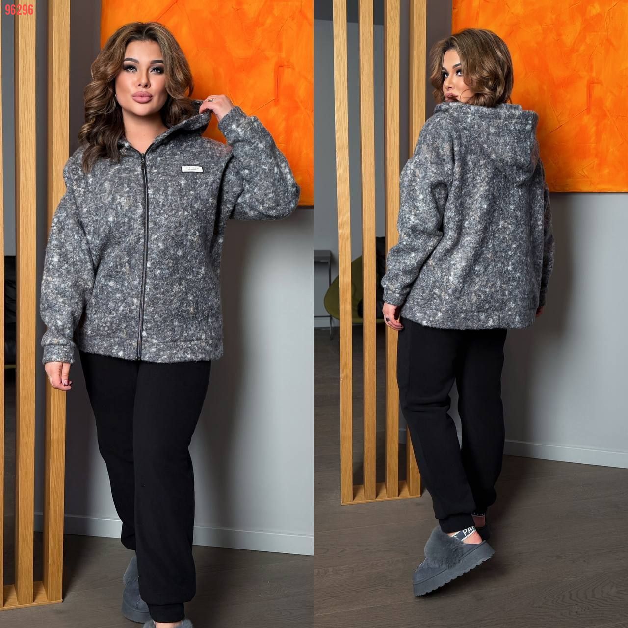 Довжина штанів : 110 см. Теплий костюм на холодну пору . Штани з високою посадкою , пояс на гумці . Кофта прямого покрою , з капюшоном .