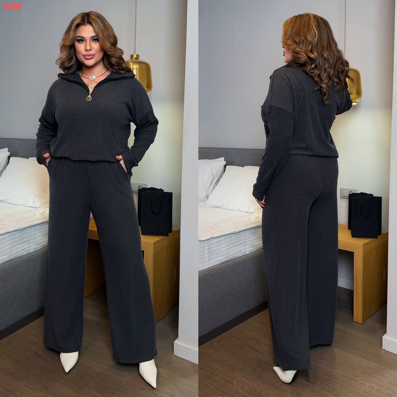 Довжина штанів : 110 см. Стильний костюм двійка . Штани з високою посадкою , пояс на гумці . Кофта прямого покрою на манжеті , комір на блискавці .