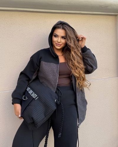 Тканина: Якісний мʼякий дуже теплий еко баранчик на флісі, комбінований чорною Хб стрейч триниткою на флісі. Добра розтяжність.
