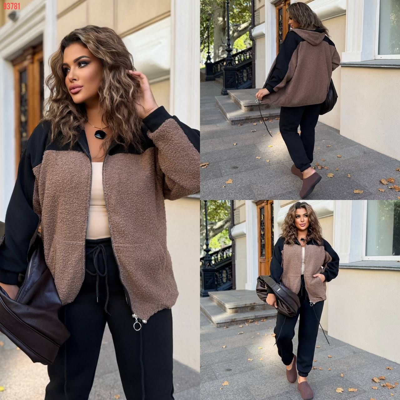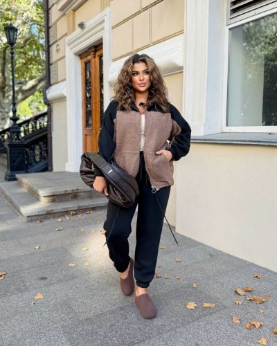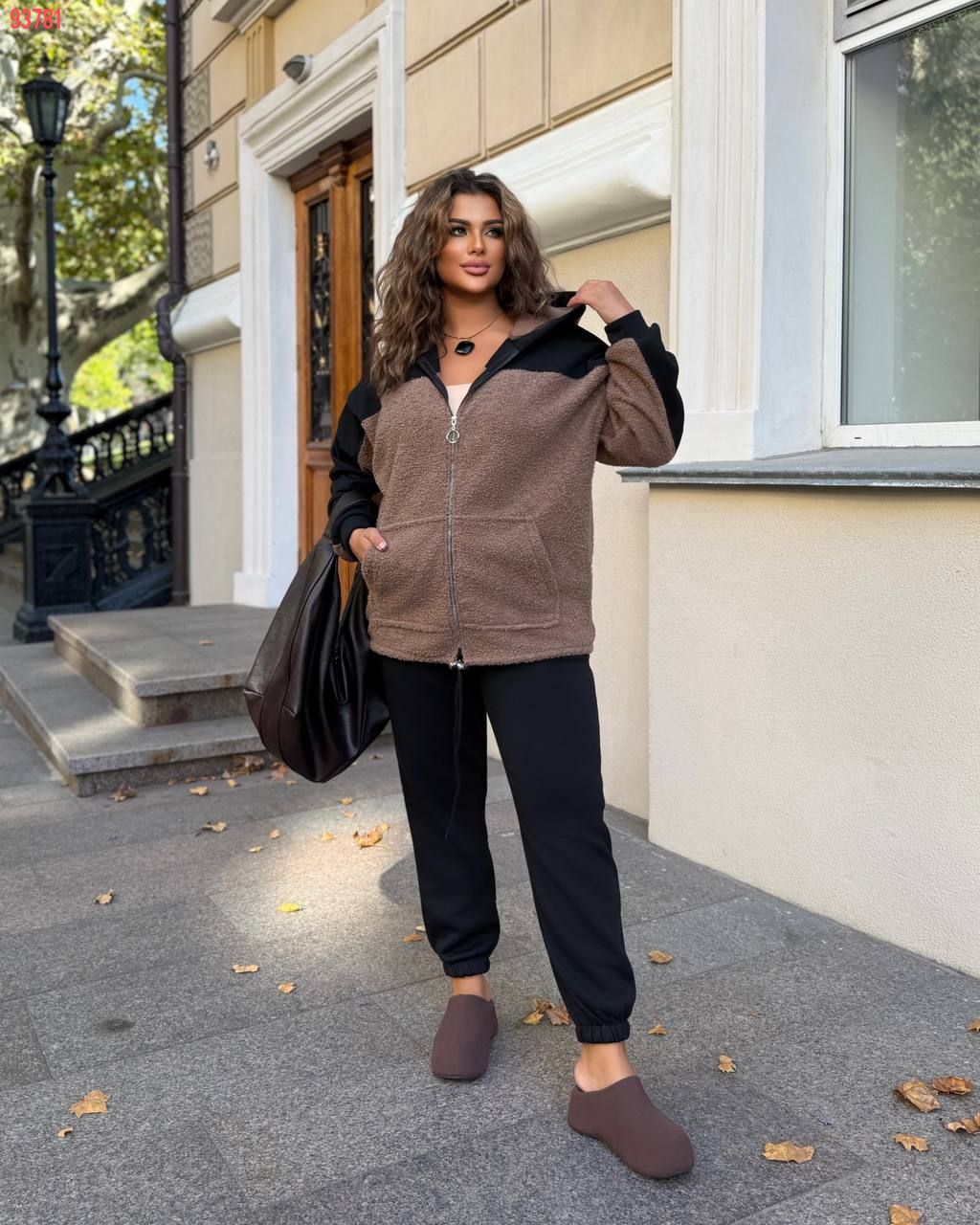 Тканина: Якісний мʼякий дуже теплий еко баранчик на флісі, комбінований чорною Хб стрейч триниткою на флісі. Добра розтяжність.