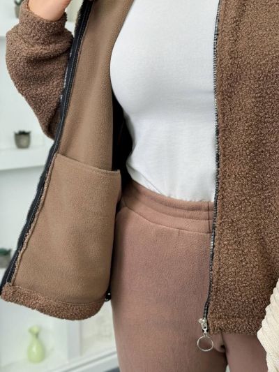 Матеріал: кофта на змійці із еко баранчику на флісі, з кішенями, по низу фіксатор з утяжкою + джогери із флісу з високою посадкою, з кішенями. Гарна розтяжність.