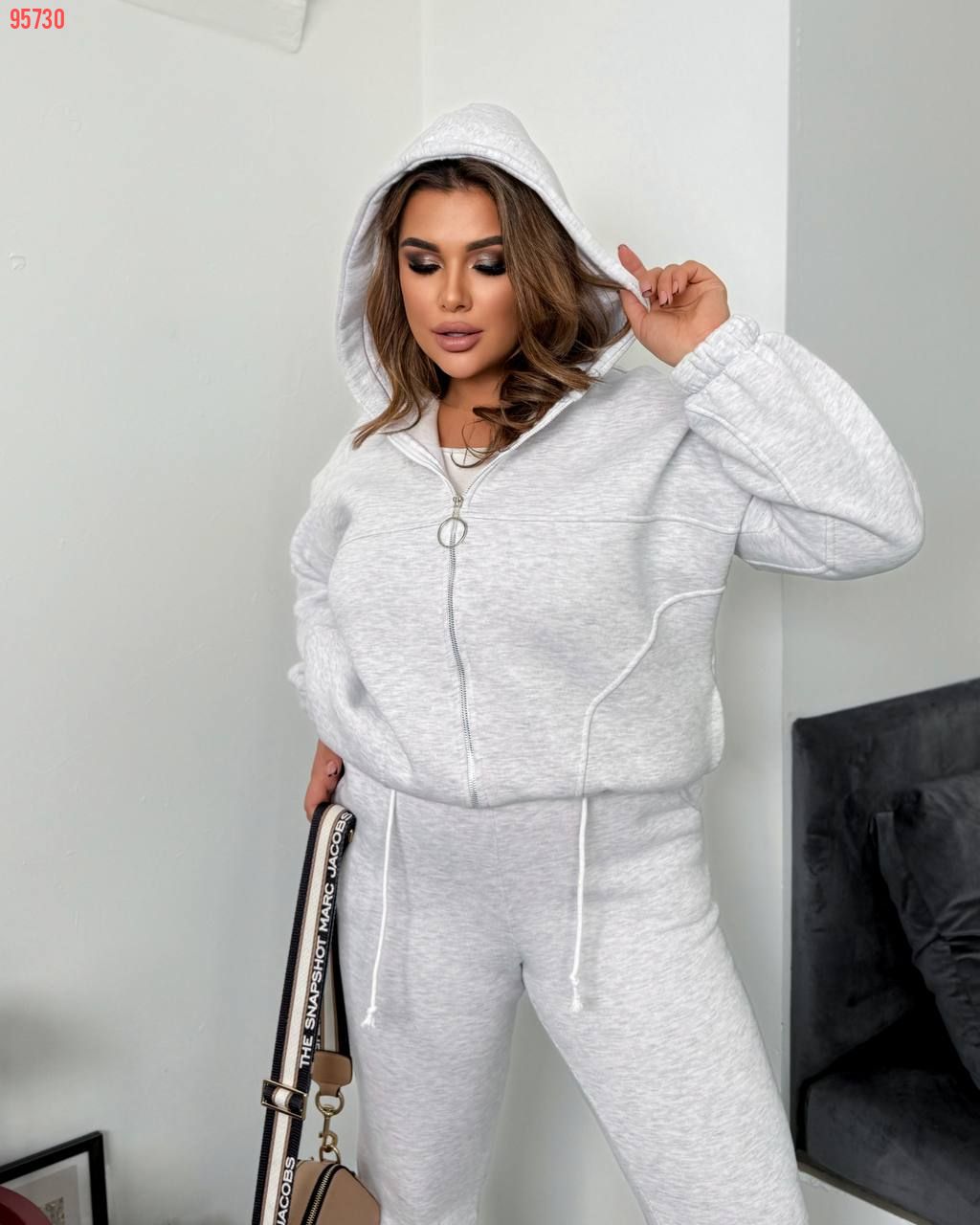 Теплий спортивний костюм з турецької тринитки: кофта на Змійці з подвійним капюшоном, по низу канатик з фіксатором + джогери із високою посадкою, з карманами у бічних швах, на поясі та по низу м'яка гумка