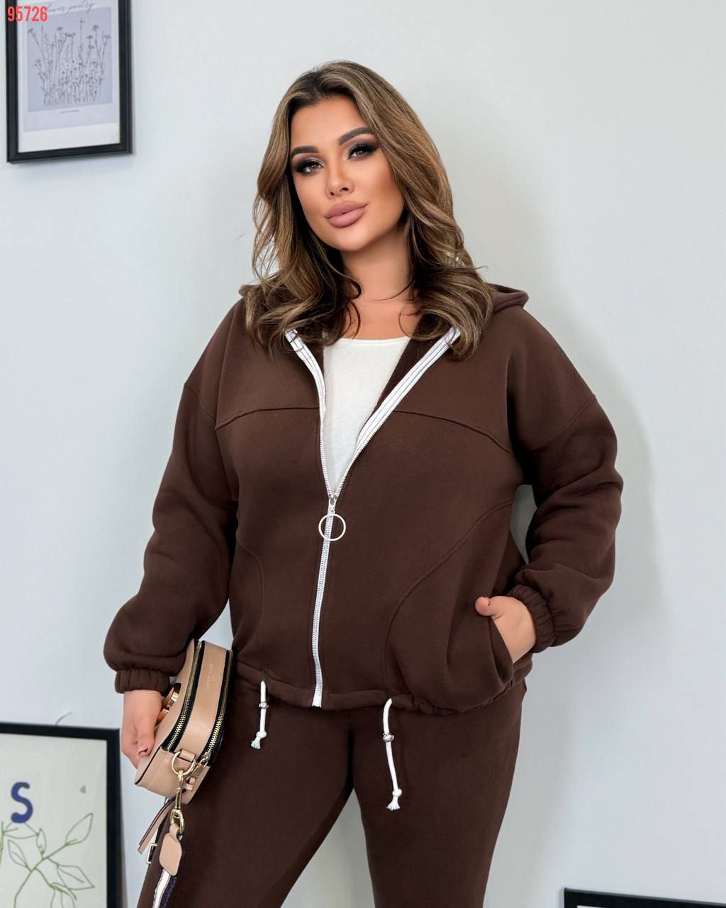 Теплий спортивний костюм з турецької тринитки: кофта на Змійці з подвійним капюшоном, по низу канатик з фіксатором + джогери із високою посадкою, з карманами у бічних швах, на поясі та по низу м'яка гумка