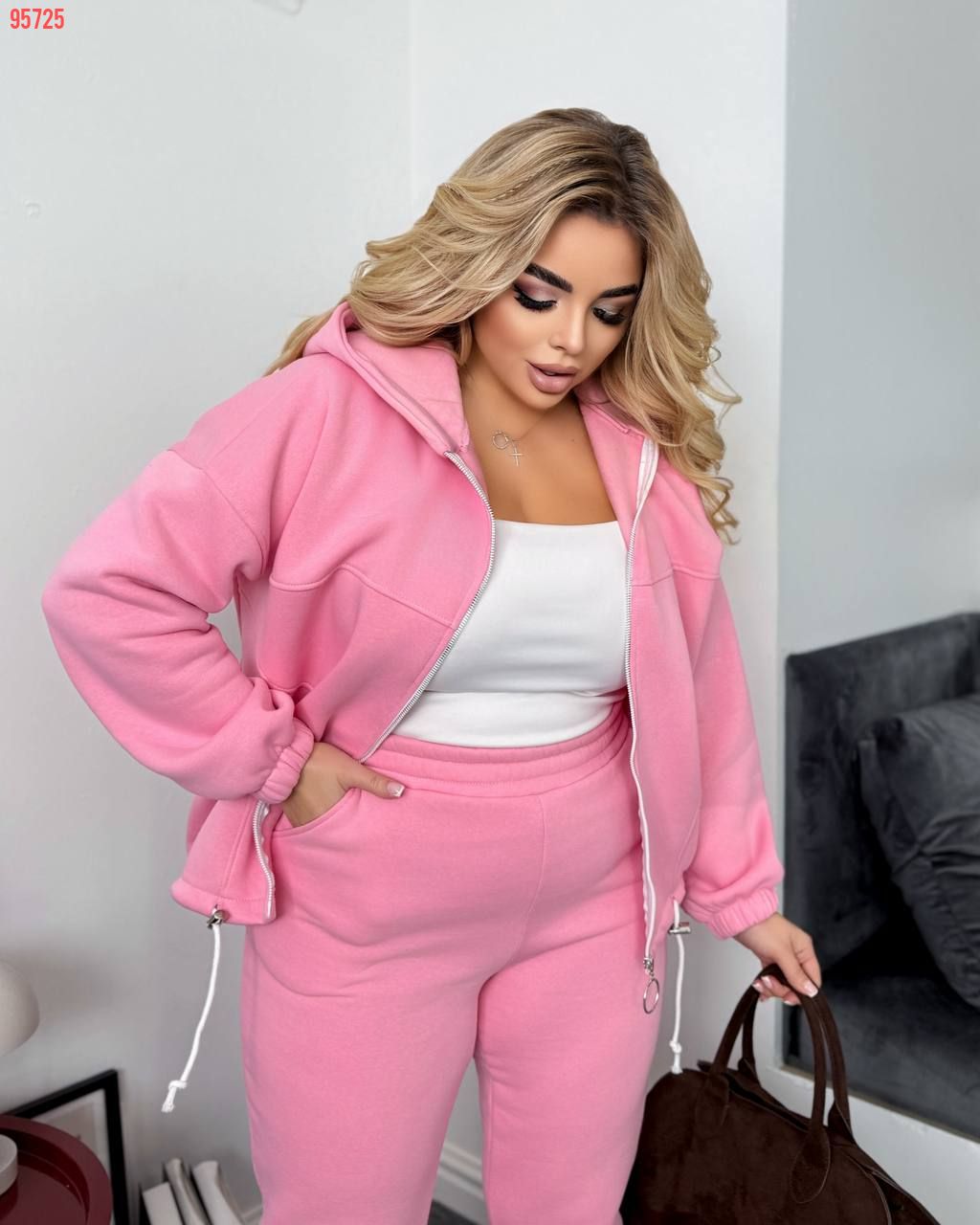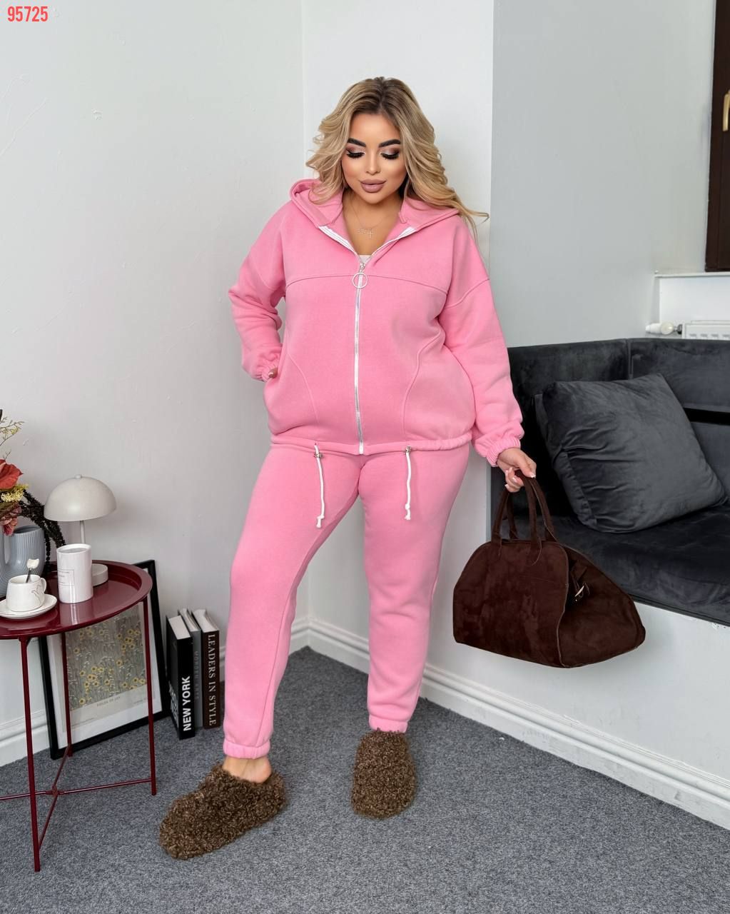 Теплий спортивний костюм з турецької тринитки: кофта на Змійці з подвійним капюшоном, по низу канатик з фіксатором + джогери із високою посадкою, з карманами у бічних швах, на поясі та по низу м'яка гумка