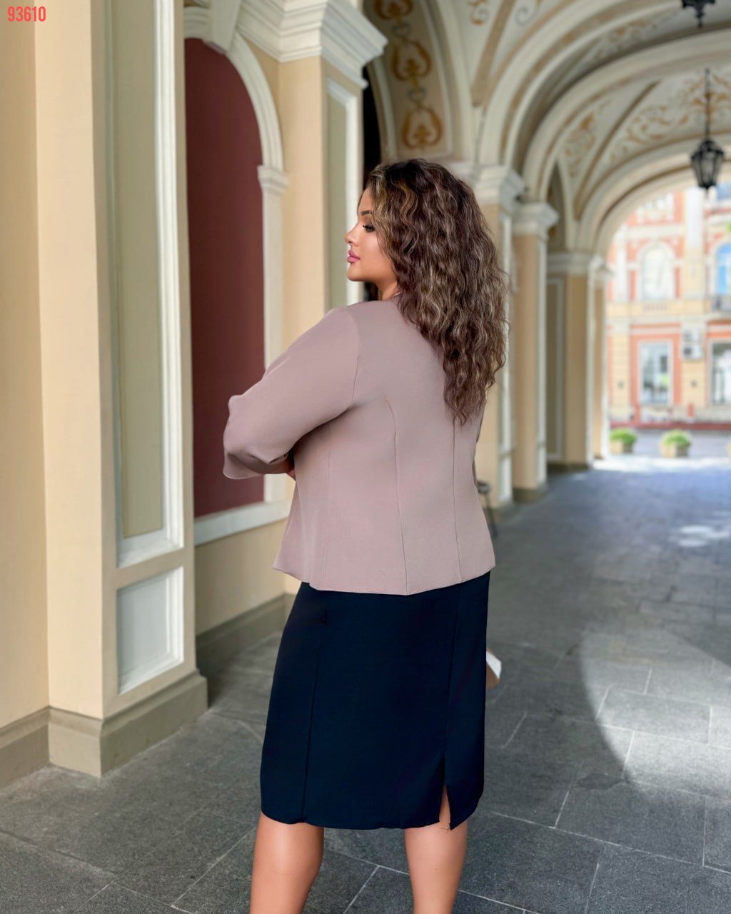 Розкішний костюм буде чудовим доповненням Вашого гардеробу! Костюм дозволить створити вишуканий жіночний силует, створюючи ошатний образ. Жакет вигідно підкреслить переваги фігури та приховає недоліки, підходить для дівчат будь-яких розмірів одягу. Комфортний, зручний, гарна посадка та сучасний дизайн. Такий комплект проситься до Вашого гардеробу!
