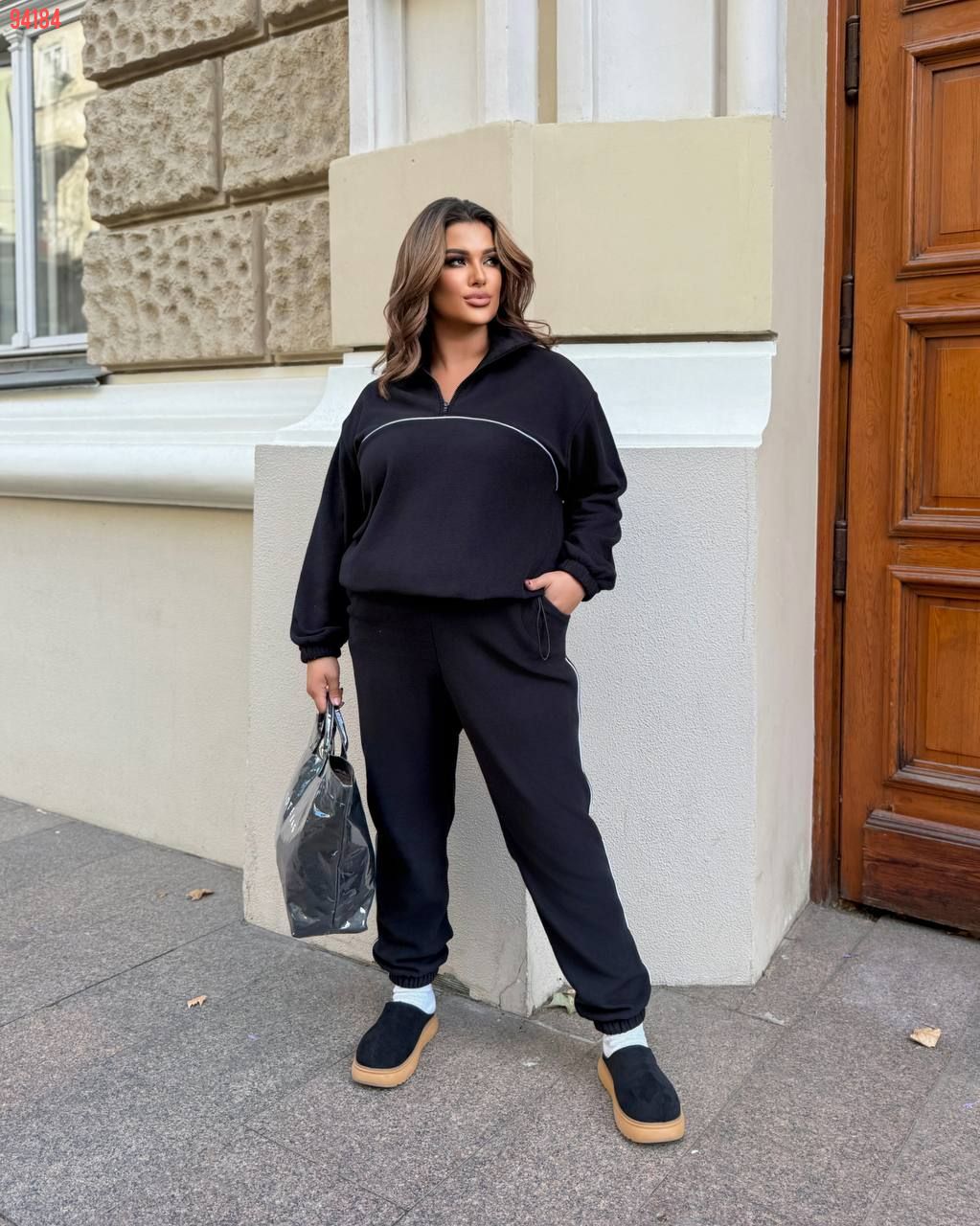 Базовий, стильний та комфортний костюм, кофта на затяжці внизу.