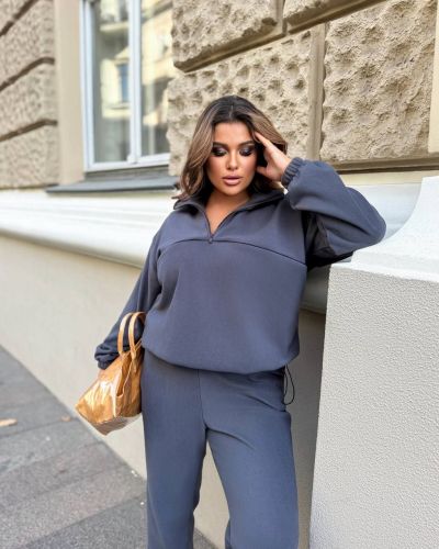 Базовий, стильний та комфортний костюм, кофта на затяжці внизу.