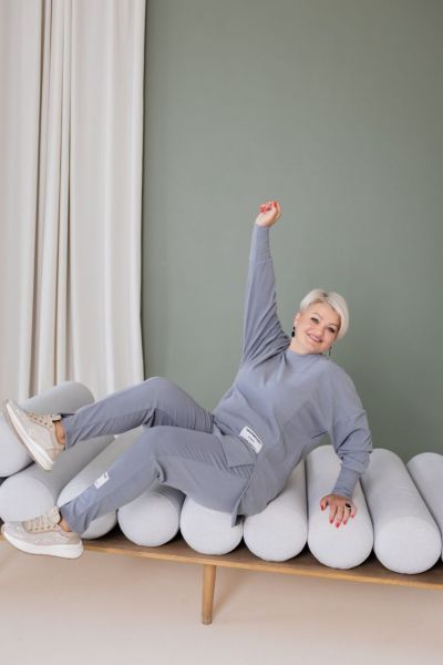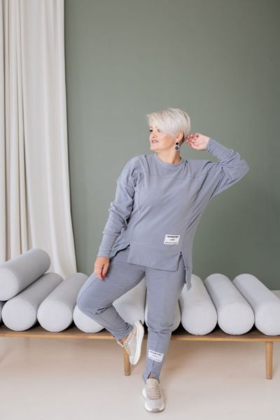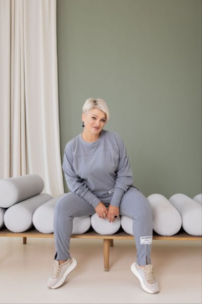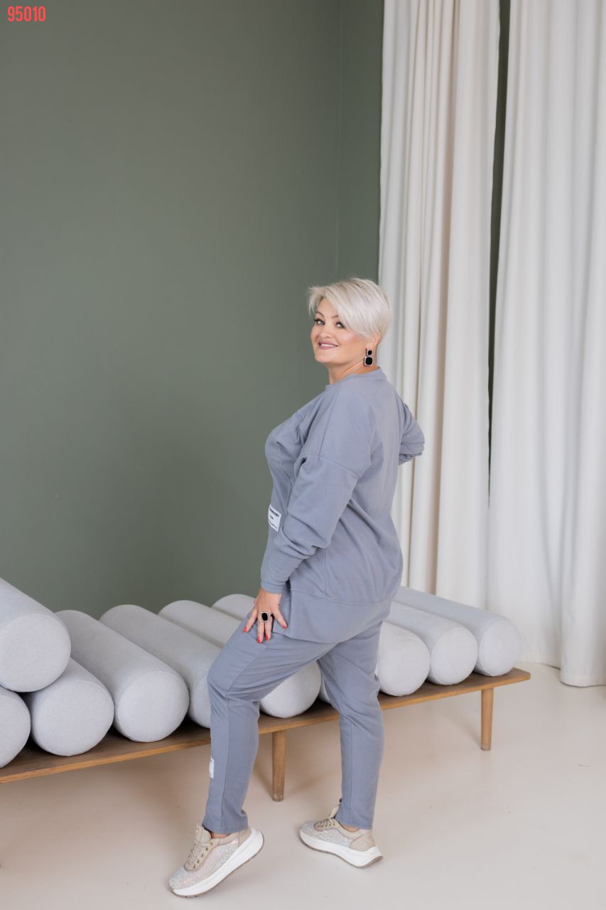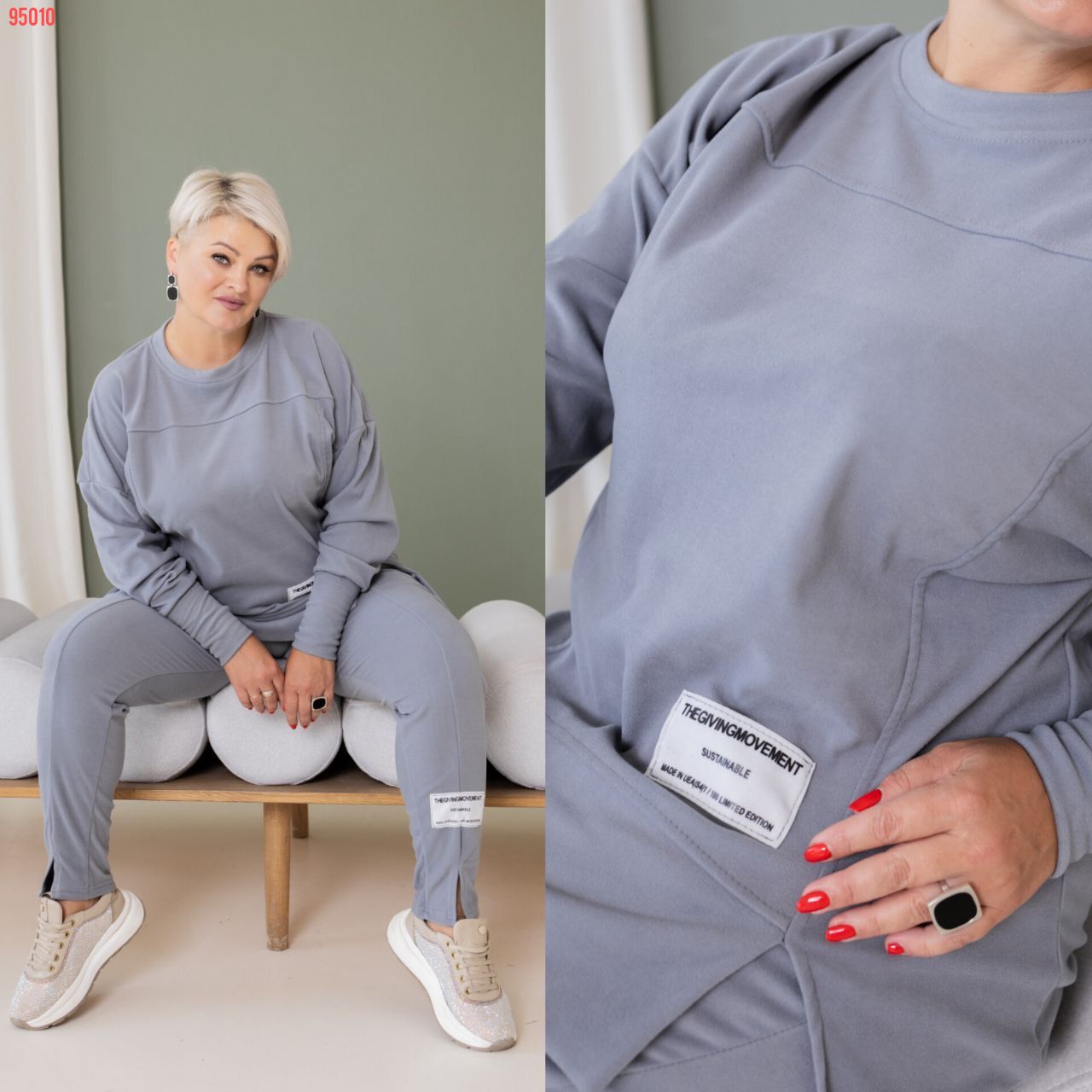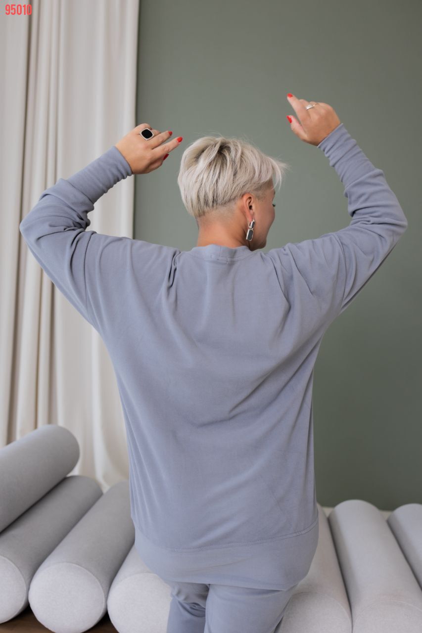 48-52 Кофта: Обхват грудей 112 см Обхват стегон 114 см Довжина кофти по короткій частині 68 см По довгій 80 Довжина рукава 73 см Штани: Обхват стегон 114 см (гарна розтяжність) Обхват талії 70/114 см (резинка) Довжина виробу 101 см