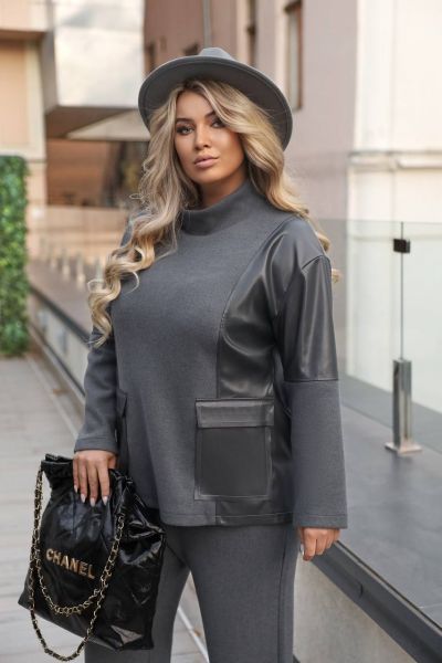 Костюм у стилі кежуал- ідеальне поєднання комфорту та елегантності. Вільний крій забезпечує зручність рухів, а вставки зі штучної шкіри додають образу сучасності та шарму. М’який трикотаж приємний до тіла, підходить для прохолодної погоди та створює бездоганний силует.