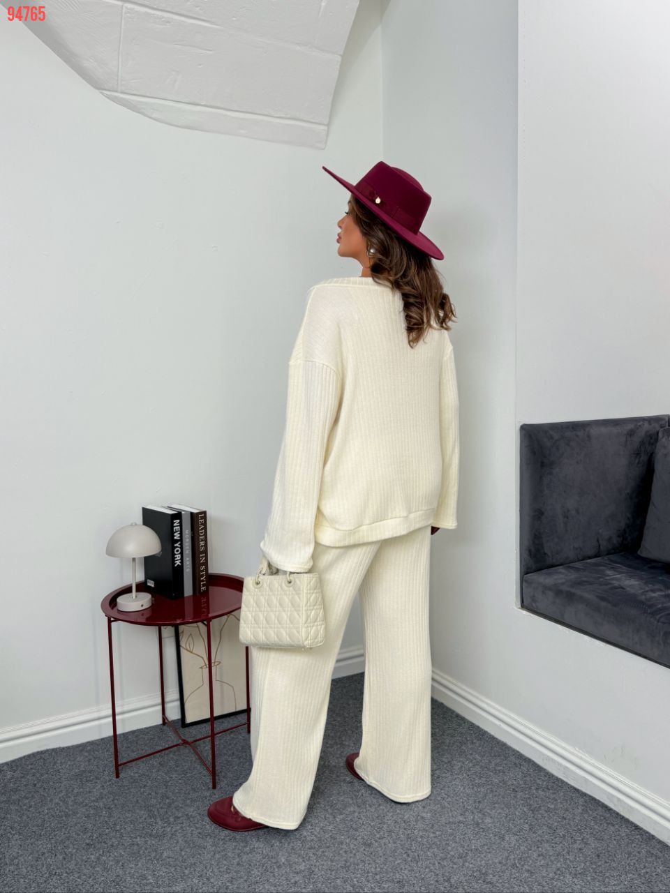 Осінній прогулянковий костюм. Кофта+ Штани. на функціональних гудзиках, довгий рукав розширений. Штани на резинці розширені від стегна. Тканина в'язання трикотаж рубчик. Тканина м'яка, дуже приємна до тіла, добре тягнеться.
