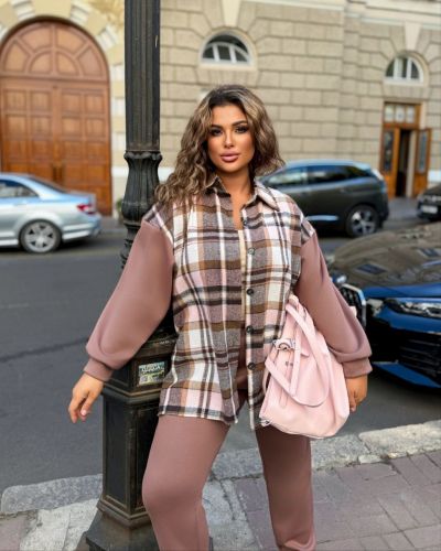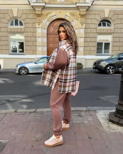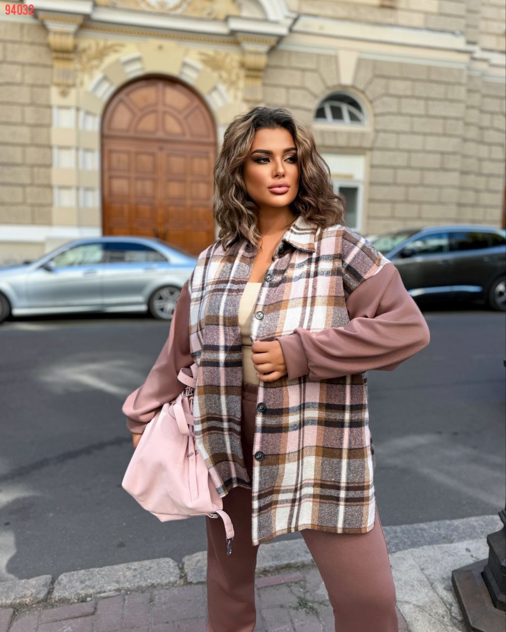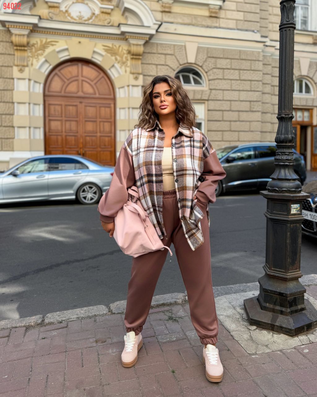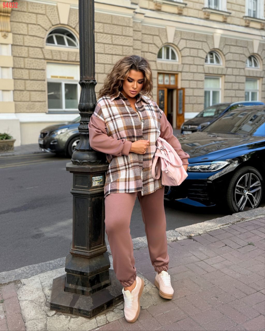 Теплий прогулянковий костюм у спортивному стилі. Сорочка+ Штани. Сорочка класична подовжена на ґудзиках попереду, розрізи з боків, на рукавах манжет. Штани, з кишенями, на поясі різанина, внизу манжета.
